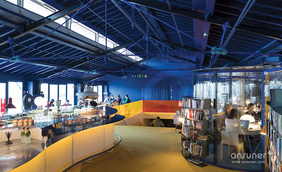 偌大的空间并没有过多的修饰,在如此开敞的空间里,建筑自身的钢梁和桁架就是最美的装饰。second home里斯本24小时全面开放,这里配置了四间私密的会议室、一处公共咖啡区和一间图书室;最棒的是为冲浪爱好者安排的海岸穿梭巴士。此外,多元化的开放场景还能举办音乐会、播放电影以及其它社交娱乐活动。 PS:Selgas Cano之前为second home设计了其在伦敦的联合办公空间,令人印象最深的就是橙色管道空间的设计,时尚办公网将在后面分享给大家。