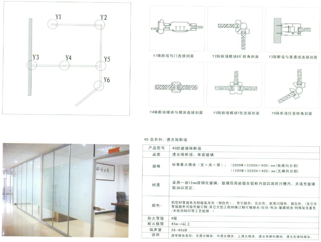 40款单玻高隔断,隔墙厚度为40mm,它也是种经济款,价格相对实惠,适合于预算低,实用为主又有一定要求的客户群。