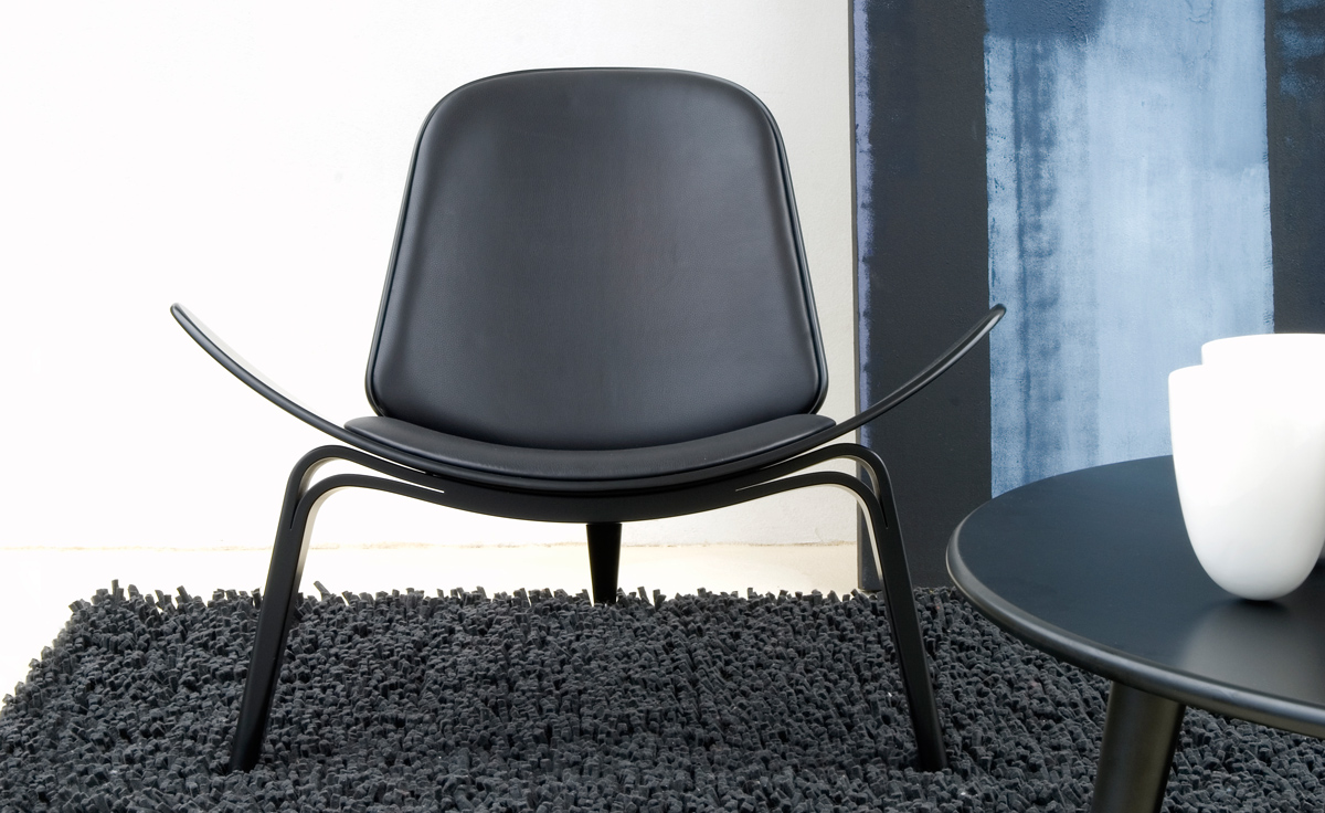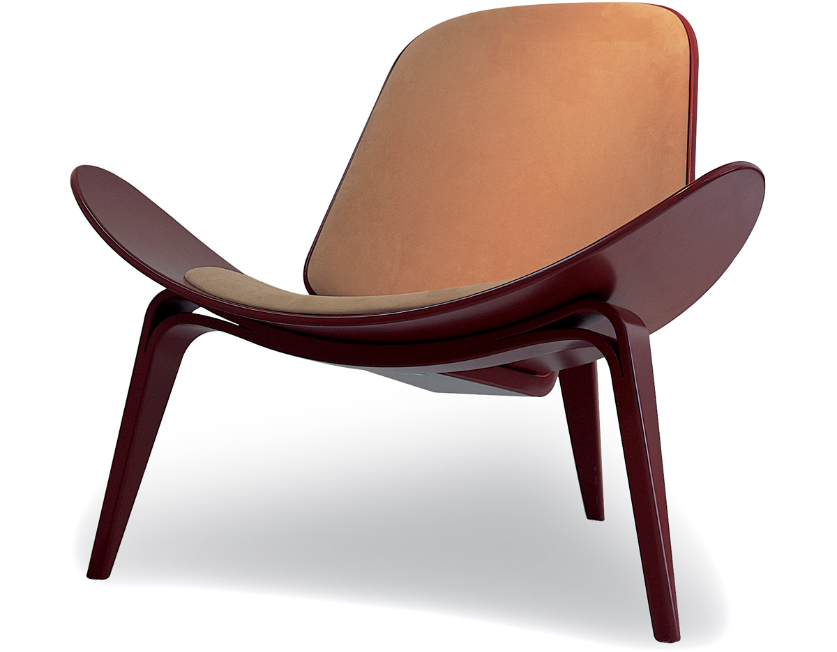 Wegner shell chair(三脚休闲椅)是由Hans J. Wegner设计的,椅子一共有三个脚,座椅像一个笑脸,又像胡子,设计师给他的编号为:CH07,外形现代、美观、独特,既可以有来看书读报,也可以用来休闲娱乐,成了20世纪最佳的设计之一。