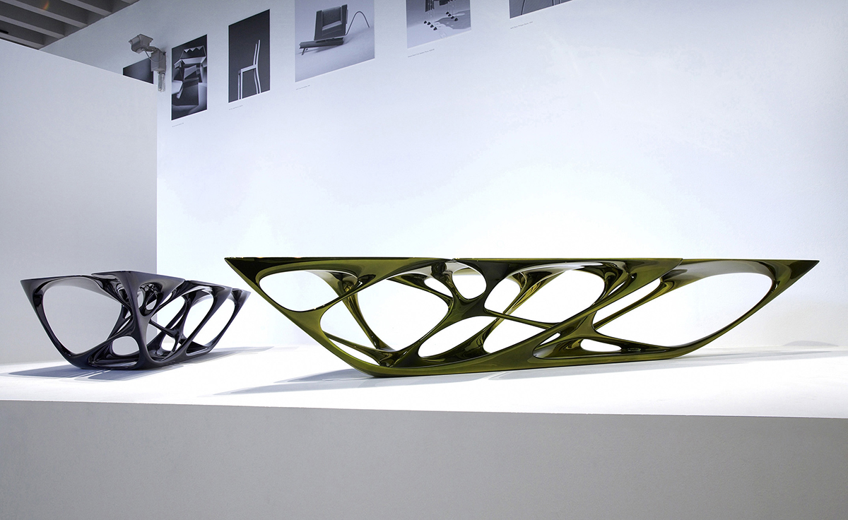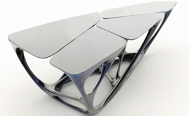 Zaha Hadid(扎哈·哈迪德)不仅是一位世界闻名的伟大建筑设计师,同时她在家具设计界的成就丝毫不逊于她在建筑领域的成就。2004年度这位伊拉克裔英国女建筑师以设计中国台湾台中古根汉美术馆而荣获建筑界最高荣誉普利兹克奖,是首位获此殊荣的女性建筑师。53岁的她,也是最年轻的获得者之一。她设计的这款Mesa Table(梅萨桌)以流体的空间造型,混合革命性的美学构建主义,让人叹为观止,座子就像一只宇宙飞船,剥离地面、 结构、 表面,创造一个“二元次”平面,这已经成为结构但空洞像固体一样表达形式。当一端被上无形的引力所吸引,它倾斜的对称性、 船头拖而下方伸展运动弹性来容纳扭曲的结构以及它的其他形式。桌子采用进口玻璃钢纤维压模一体成型椅身、表面优质烤漆。