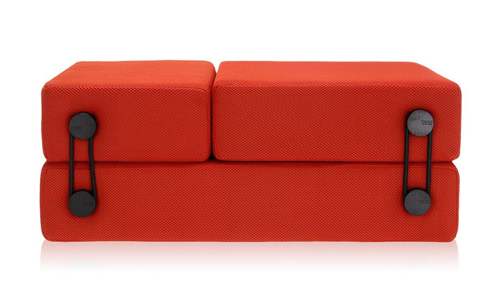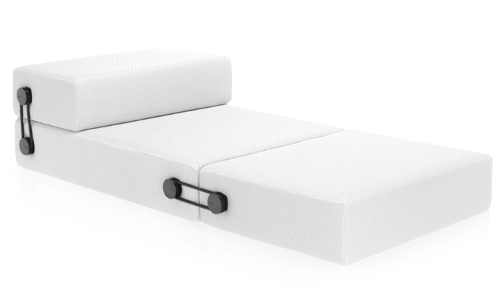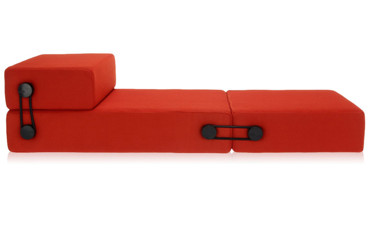 Trix Sofa Bed(Trix 沙发床)三个不同的元素组成的,通过弹性可随时转换和适应不同的用途,通过简单的旋转优雅系统连接。Trix 可以两人坐垫凳,舒适的床、 躺椅,或者扶手椅。Trix 是由可移动(折叠)的3D 图案技术面料泡沫聚氨脂软垫制成的。