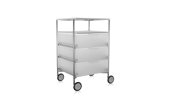 Mobil storage(移动储物柜)是由意大利国宝级设计师Antonio Citterio(安东尼·奇特里奥)设计的,他的设计跨越三大洲,已成为设计领域最活跃的渊博人士,1972年,他与著名品牌Arclinea厨具、flexform、Flos灯具等合作,1987年,为B&B设计的座椅获金罗盘奖.Mobil取自移动机制知名,带有随处收纳、移动变幻的多元满足,以多层抽屉式的收纳,搭配置物层版,不论是作为床边柜、工作室文件抽屉、生活收纳等,都非常合适。此外,另可选择滑轮式样、或是固定式座脚,自在搭配。