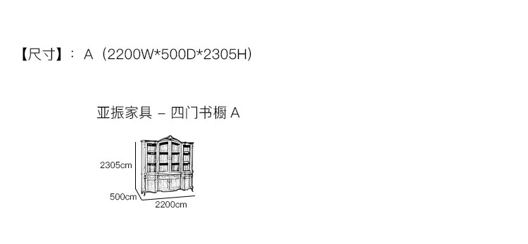 亚振家具 - 四门书橱 产品尺寸/示意图