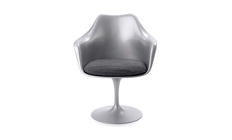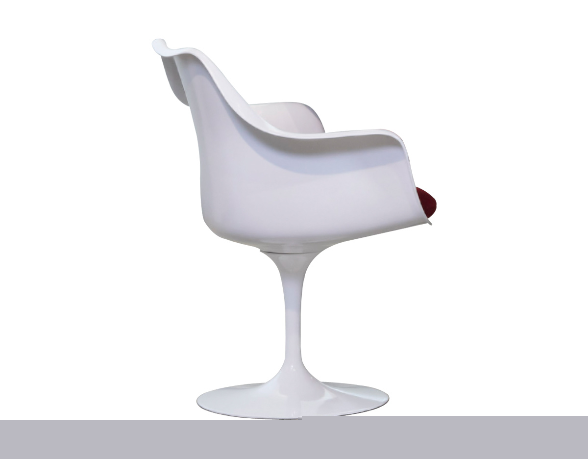 沙里宁郁金香扶手椅设有铸铝底座。外壳是用增强玻璃钢材料完成。座垫是可以可拆卸更换的,有拉链锁扣。