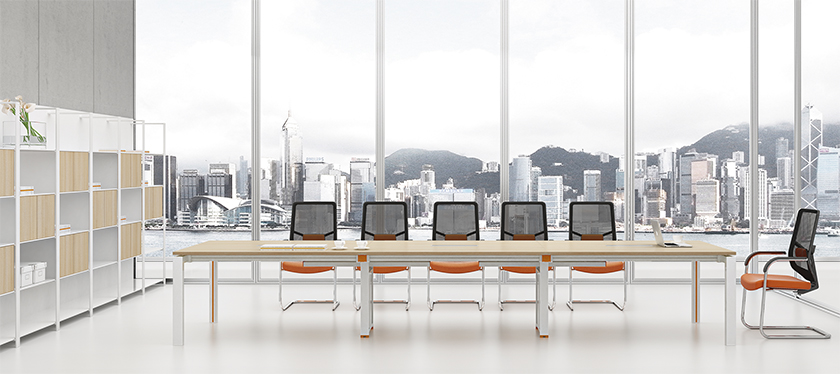 | 5、台下过强弱电过线系统。 | 6、桌面吸音隔板,多选人性化颜色可选。 |