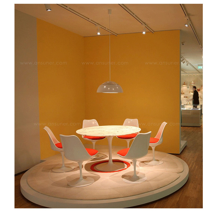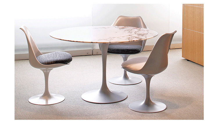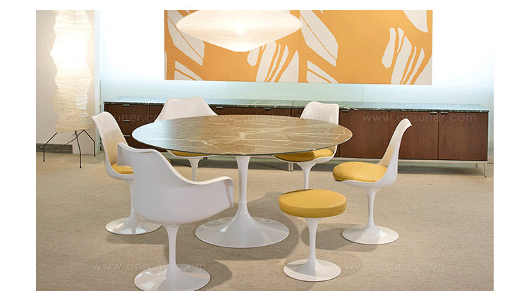 他的设计方法是纯粹的,芬兰出生的艾罗沙里宁追捧出来的基本思想,并将其降低到最有效的结构性解决方案。1956年在它的基础上他设计了郁金香椅,而不是一个特定的形状。 “在任何设计中的问题,应该寻求的下一个最大的事情方面的解决方案。”他说。 “如果问题是椅子,那么它的解决方案必须在其涉及到房间的途中发现......”在郁金香沙里宁实现了他的正规统一的理想:“每一件家具都有一个整体的结构。”1969年赢得了现代博物馆艺术奖,郁金香是沙里宁最具有天才的设计。