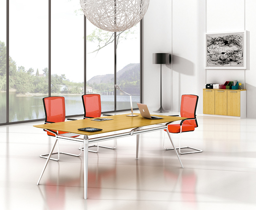 贝格系列产品减掉一切与视觉主题无关的杂元素,表现一种典型特征的切面,将视觉信息浓缩到单纯的极致,用简单的切面传达设计中现代简约的风格,缔造时尚、唯美的办公家具艺术空间。在产品设计中结合极简的“人”字钢架外观造型,完全符合现代美学设计潮流,同时彰显以人为本的现代企业的经营理念。