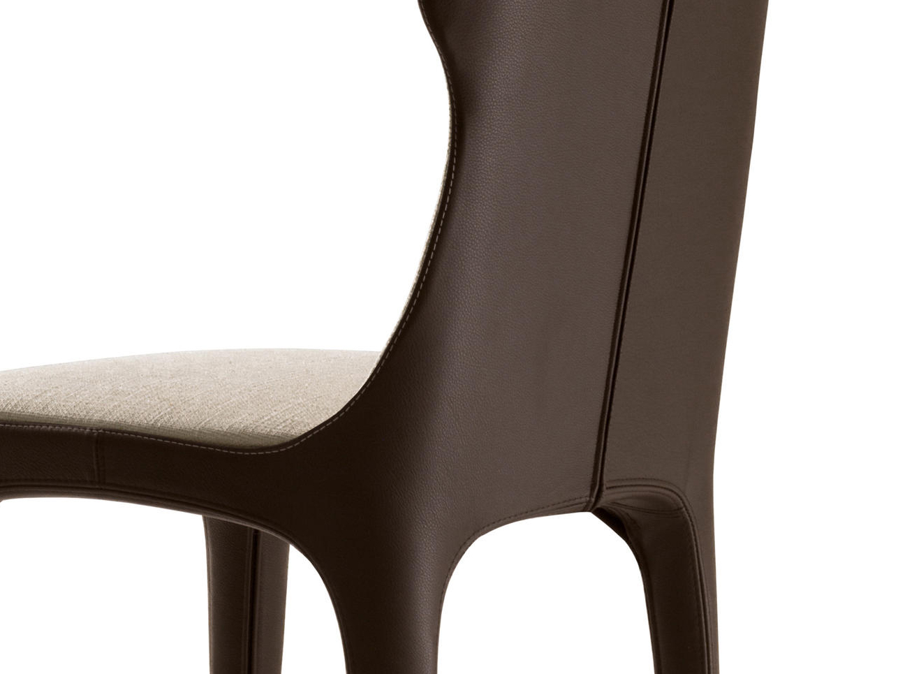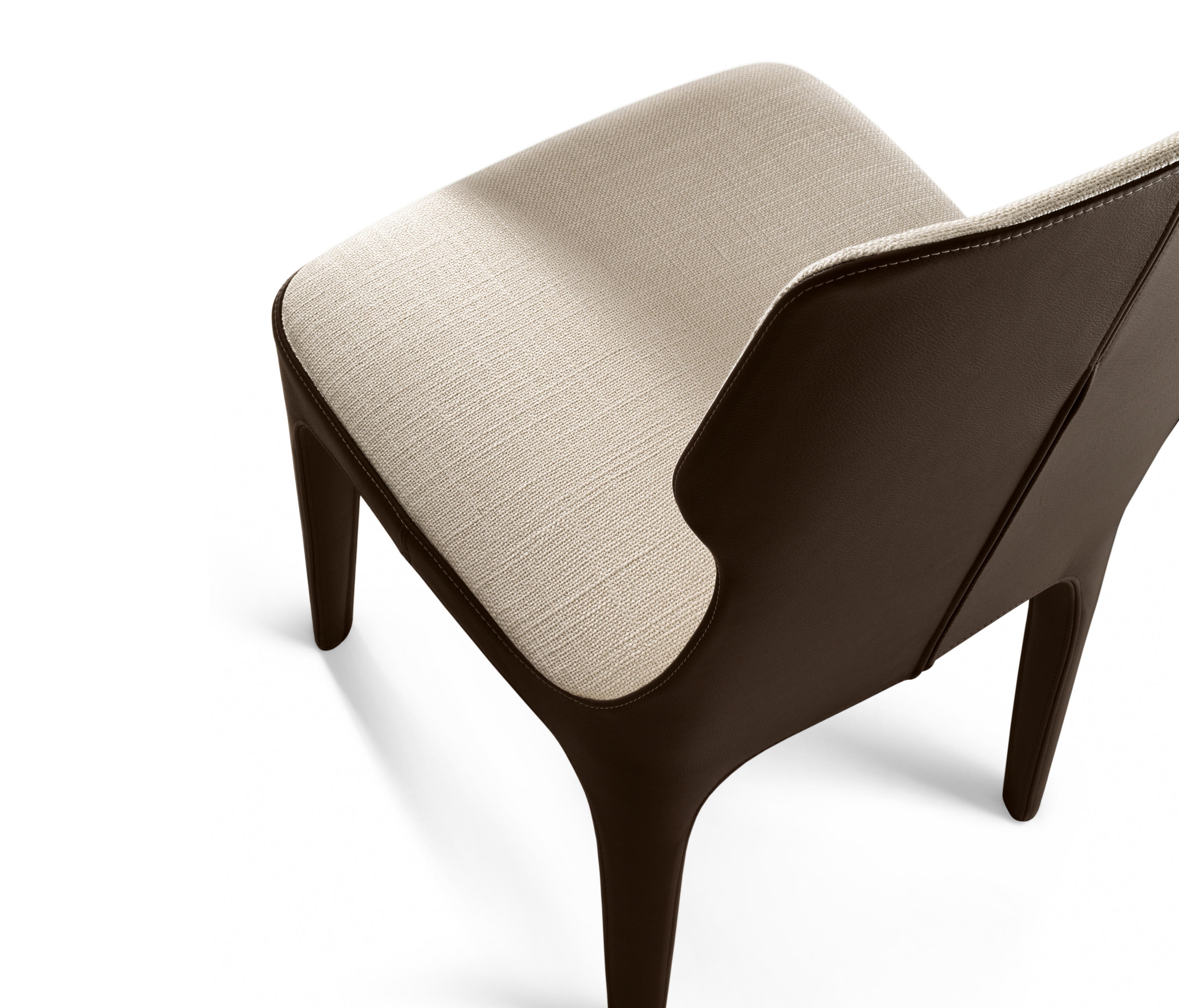 椅子的结构型钢和coldfoamed聚氨酯覆盖纤维填料。室内装饰,织物或皮革,完全是可移动的,是一种在一个颜色或两种颜色与外侧、皮革和皮革或织物内部的一腿。脚盖是黑色聚氯乙烯。