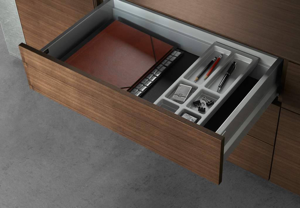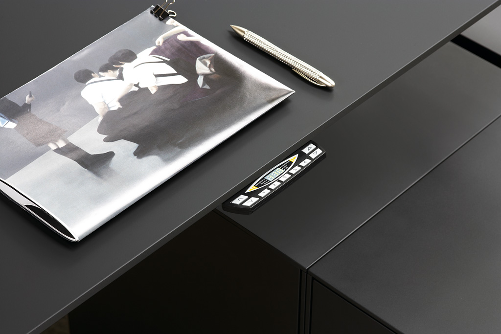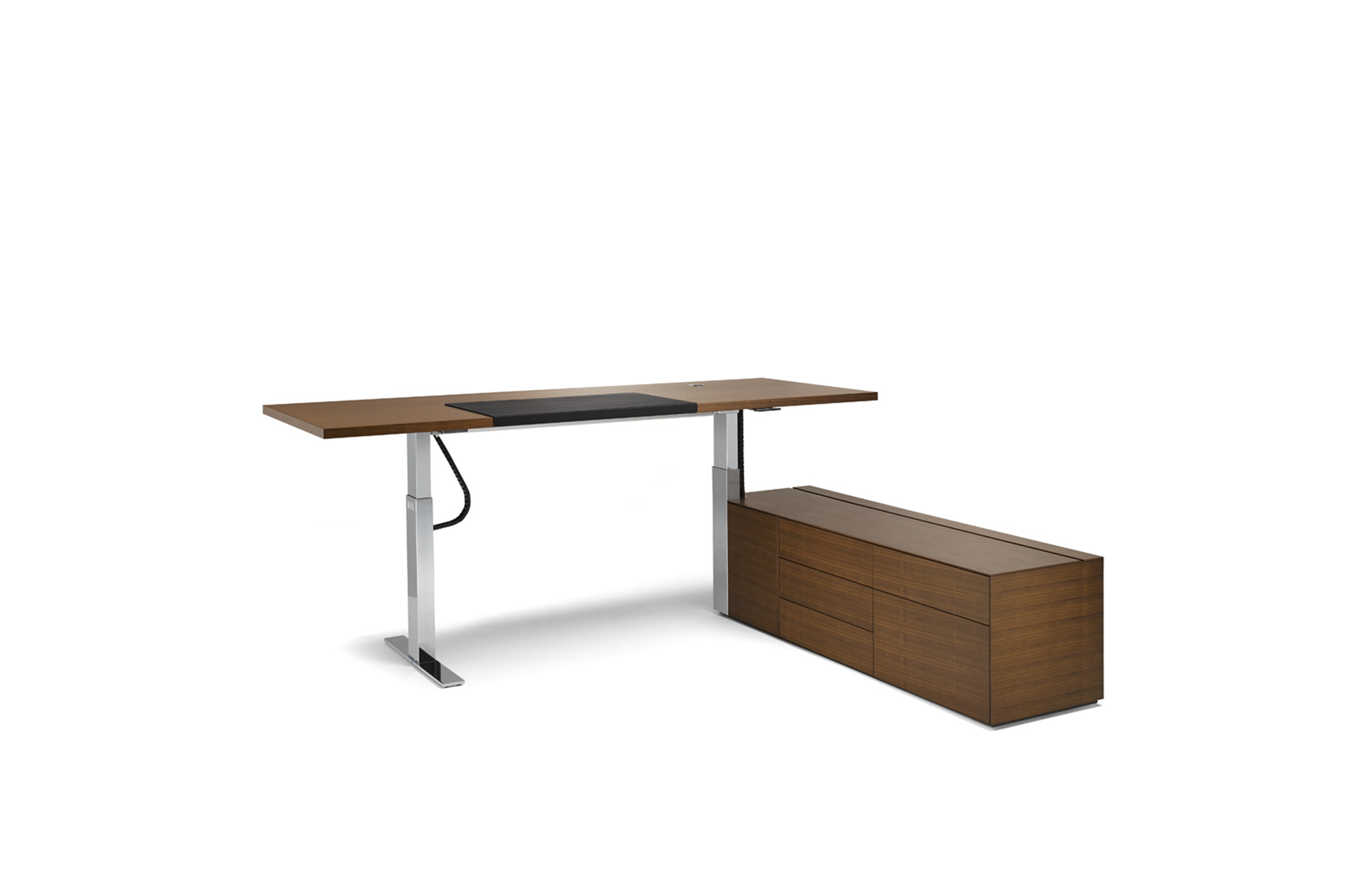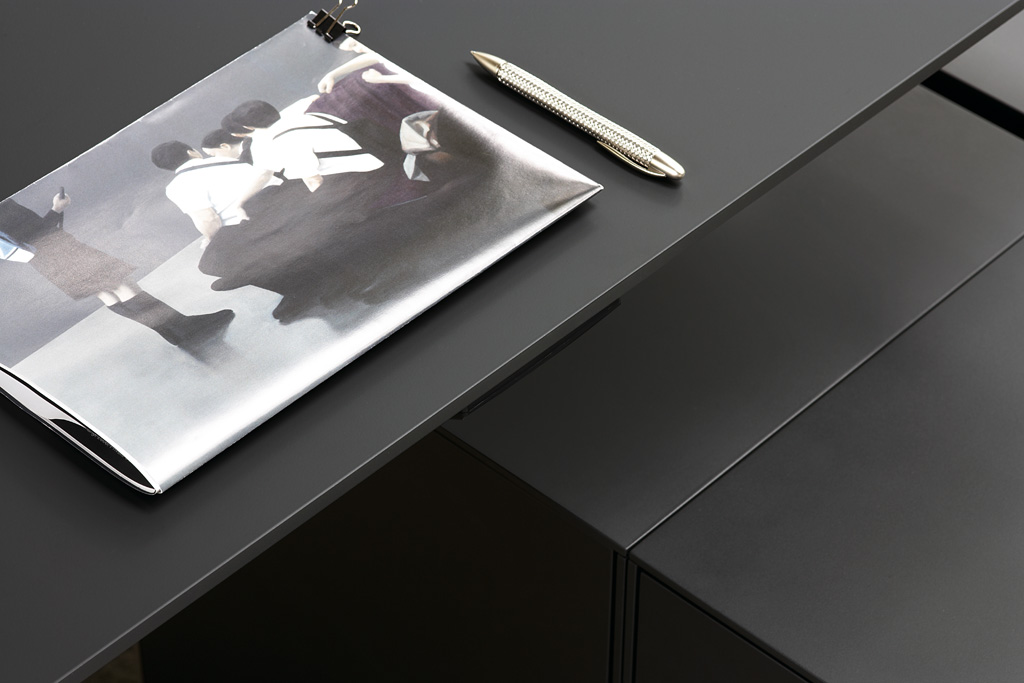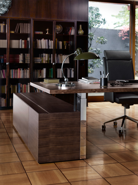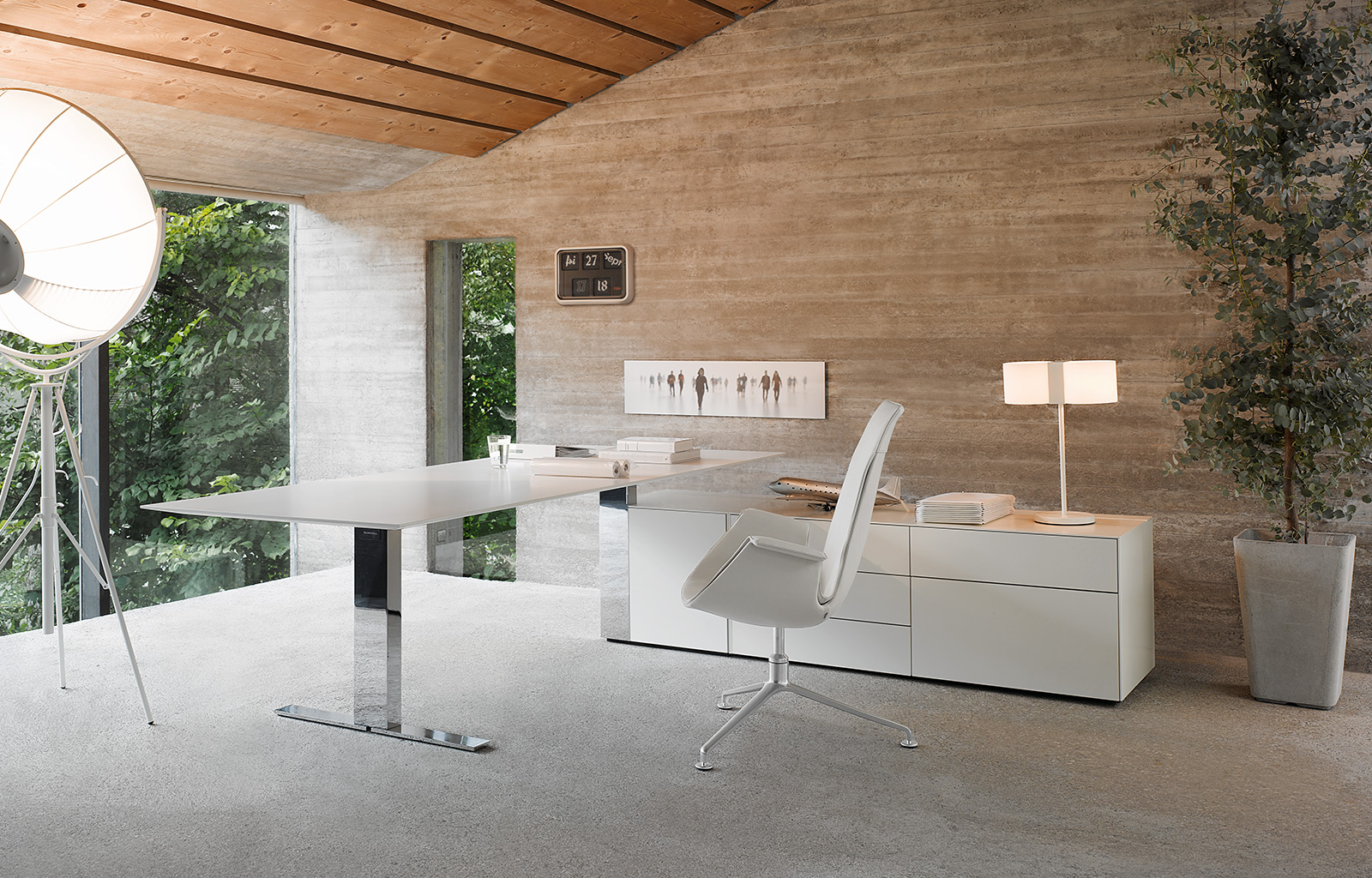 Exec_V是一款可调节高度的办公室系列,灵活的升降功能是这款产品的代表性功能。你既可以坐着也可以站着,完全符合人体工程学和对健康的追求。桌面看起来像是漂浮在底座和底座上,直线和角、宽和立方体的形状形成一种和谐的相互作用。电缆被包裹在升降底座上,作用于包括班台、副柜、会议桌等等。Exec_V是一款具有代表性和使用性的优秀升降班台.