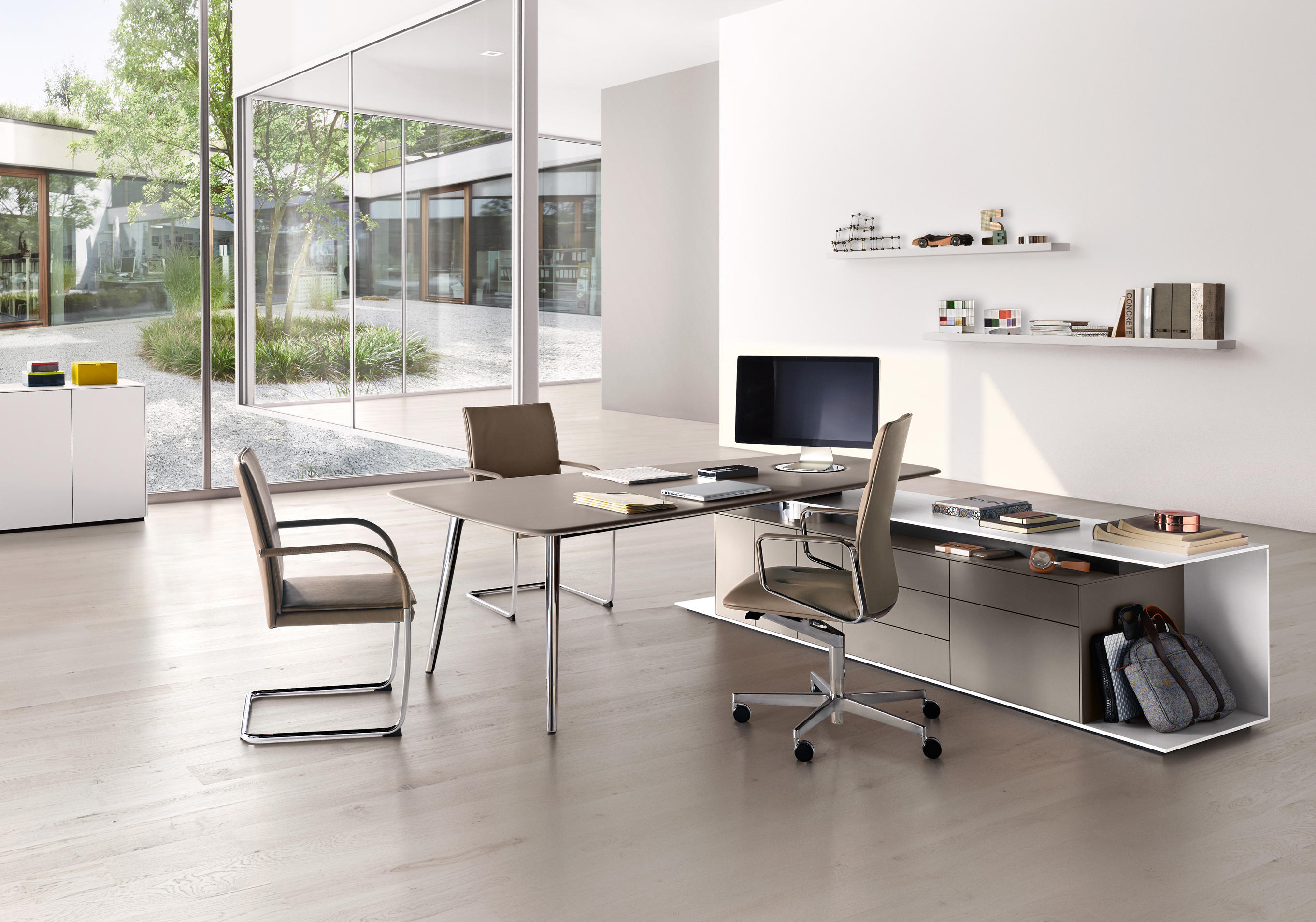 现代领导的关键能力源于强大的沟通能力。调节、启动、传达,这些都是对企业文化成功的实践。Kepiece系列为现代领导提供支持,无论是集中工作还是在小组中进行激烈的讨论,Kepiece交流台都能提供促进了现代社会工作方式的场景。满足了工作,咨询,会议,视频会议等要求。并有足够的空间放置CP设备和日常所需的办公用品.