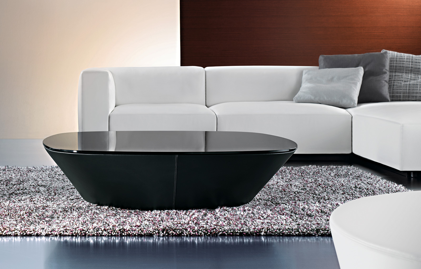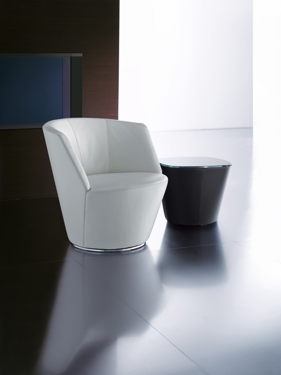Ameo系列茶几与Ameo系列休闲椅相匹配。拥有黑色和透明两种颜色和不同尺寸的玻璃桌面,桌身用皮革包裹着。完美的与Ameo系列休闲椅搭配。