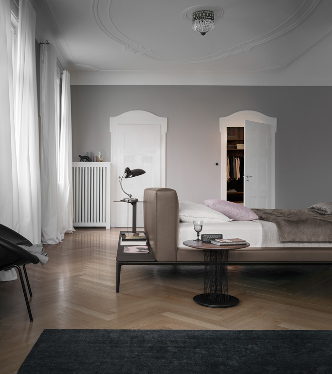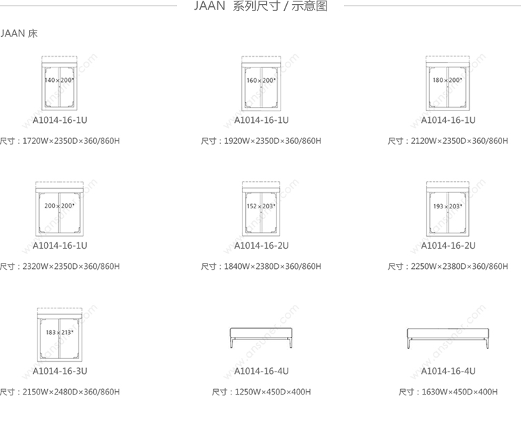 JAAN床最引人注的是它迷人的魅力,非常的柔软,非常的休闲。诗歌以简洁的线条形式出现。柔软的皮革或者天然织物构成床头板和软垫框架。完美的细节,精心打造。