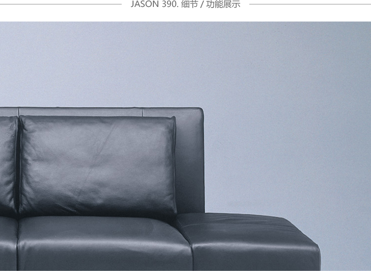 Jason 390是现代生活的代名词。智能设计具有实际目的,扶手延伸机制藏匿于框架内,可以随意将沙发在两人、两人半、三人座之间更换,无需太多时间就可以增加座位。先放在一边的靠垫也可以拿来充当枕头。