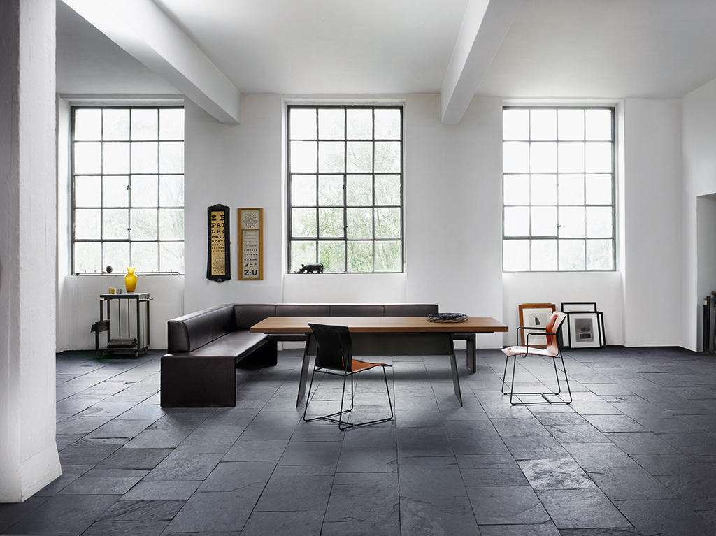 为了寻求在餐桌上一起坐下来的新解决方案,奥地利设计团队EOOS再次发现了拐角沙发。这是屋子里的聚会点,一个用来一起开会、一起吃饭或者仅仅是一起坐着的地方。沙发简约的造型与良好的软垫为它提供了整体的舒适性。