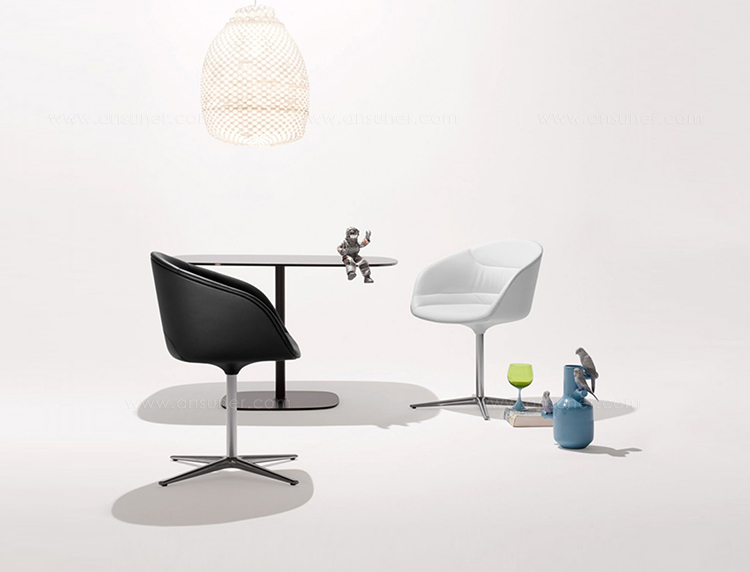 斗式座椅是真正的多面手,适用于休闲、用餐、办公和会议。同时又有一个五星脚轮提供了一种新的选择。