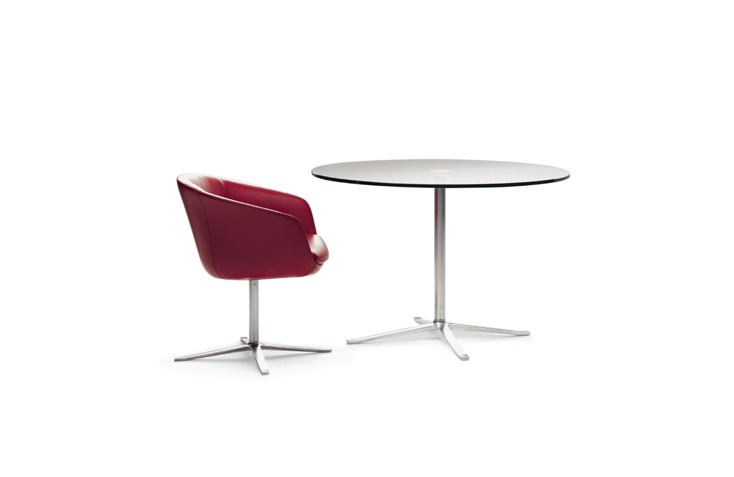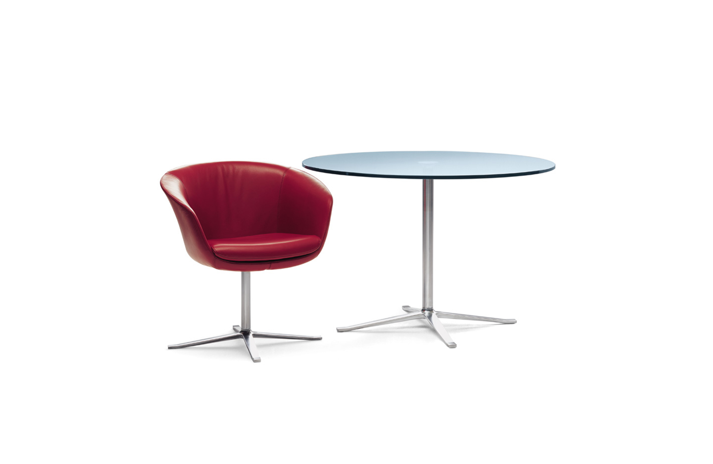 这是一张能提供豪华舒适感的软垫扶手椅。其轻柔的扶手,舒适的靠背,构成了线条迷人外形。依靠其细长的支架,椅子可以很随意的转动。同时与脚架类型相同的X茶几相配套。