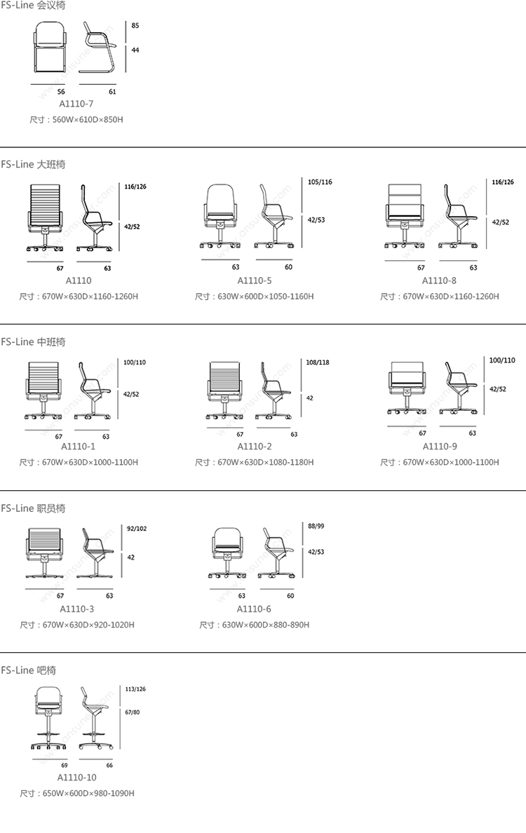 FS-Line 212/5 会议椅 系列尺寸/示意图