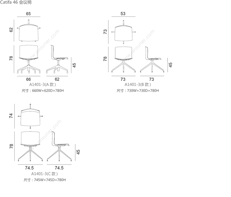 Catifa 46 会议椅 系列尺寸/示意图