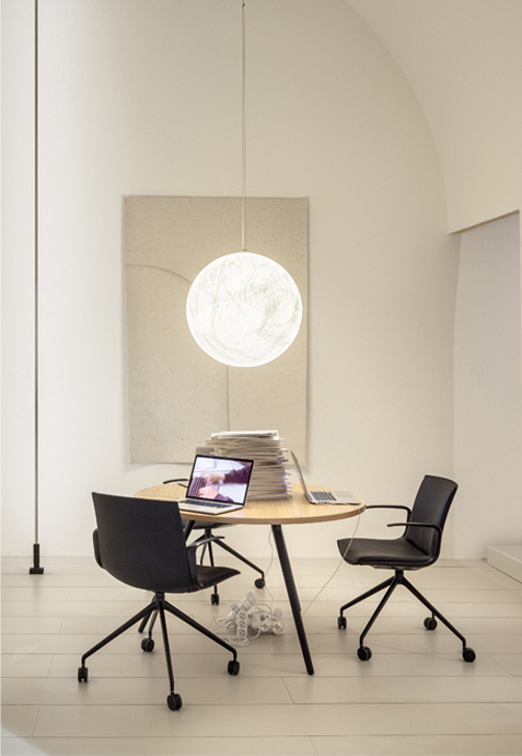 Catifa的标志性形状在使用中无处不在。 该系列产品在住宅和合同环境中都很舒适,有多种颜色,材料和结构可供选择。 Catifa Up是2017年的新款,比Catifa 53提供更高的靠背,新设计中增加了可选扶手和毛绒衬垫,为会议室,工作场所,家庭办公室和会议室提供了庄严的舒适性和支撑。 一系列新的装饰选项为不可磨灭的设计带来视觉上的吸引力。 通过Catifa Up,优雅和舒适的团队完成工作。