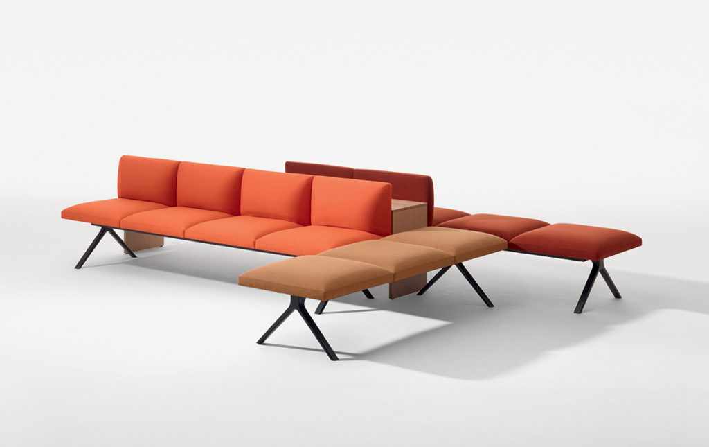 Kiik是一个模块化系统,由各种尺寸的框架组成,可与垫子结合,可提供或不提供63x63 cm靠背,座位高度为45 cm。Kiik桌子有不同的形状和尺寸(矩形、方形、三角形、四分之一圆形),因此允许线性和L形模块(120°和90°)。该系列的补充是一个控制台与252x40厘米的三个高度顶部:58,72 e 105厘米,和126x157.5厘米的座椅高度36厘米的搁脚凳。