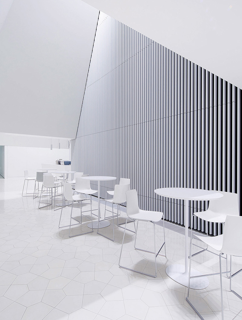 高脚台为圆形底座,白色有光泽或黑色哑光粉末涂层钢,顶部为白色压花MDF(厚2.5厘米)或层压板FenixⓇ(厚2,6厘米),有不同形状和尺寸(方形,圆形)。 身高105厘米。