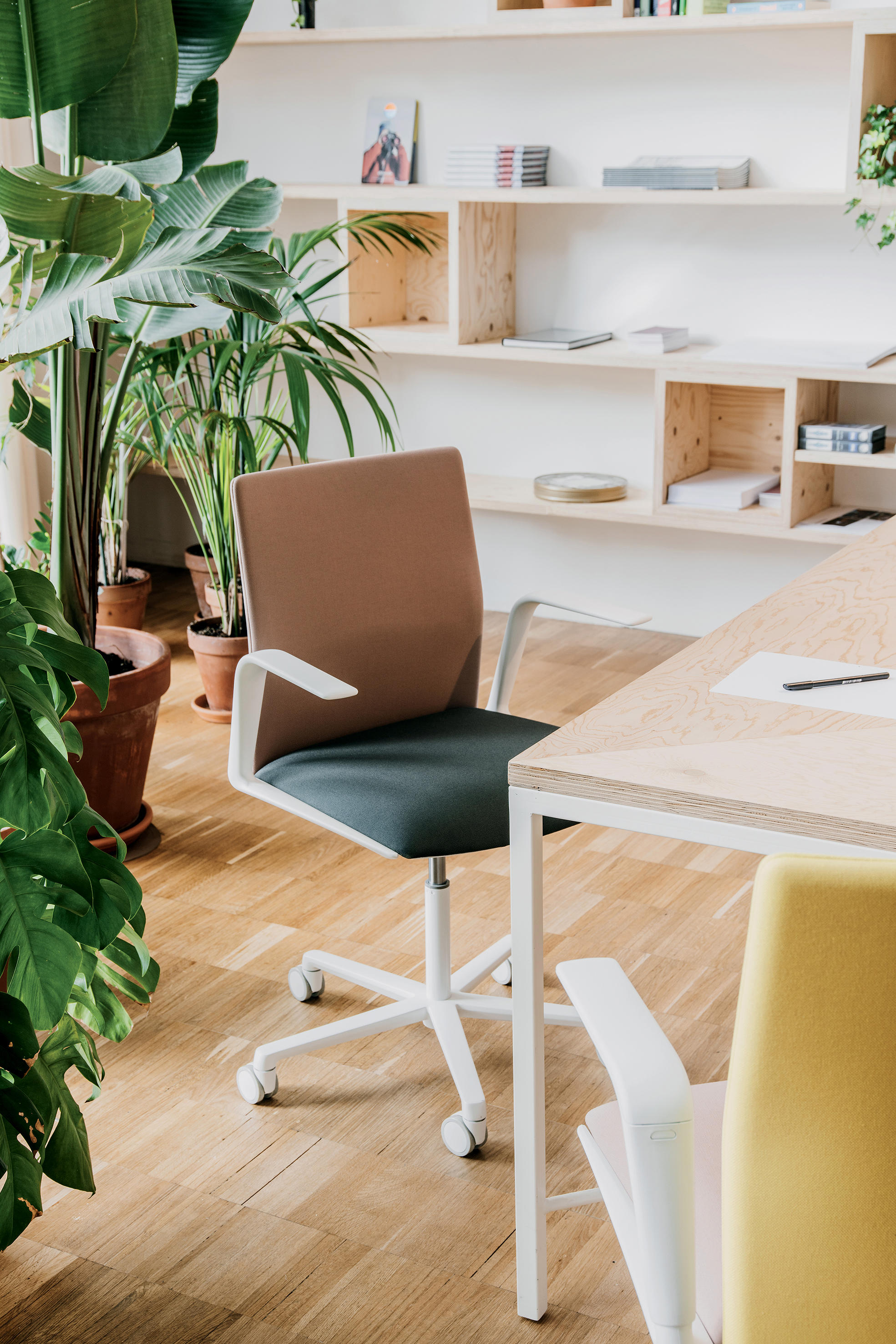 推出Kinesit,Arper的第一个办公椅,百分之百符合法规要求。椅子和椅背设计轻巧,设计简约,可完全调节,使其符合各种体型,即使在耗时较长的项目中也能获得最佳舒适度。椅子上有一个隐藏在座椅下方的内置机构,可提供同步运动和座椅高度指令。隐形可调节腰部支撑隐藏在靠背的薄框内,提供额外的灵活性和舒适性。 Kinesit可通过Arper目录中的所有面料系列进行定制。