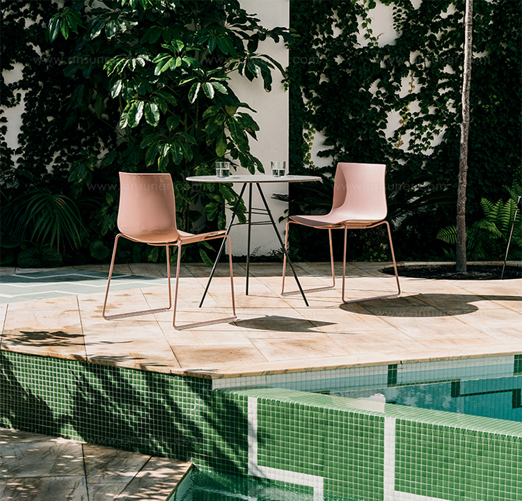 基座有三脚或四脚。全部采用白色,摩卡或绿色涂漆钢材制成。防水HPL上衣有灰色可供选择。