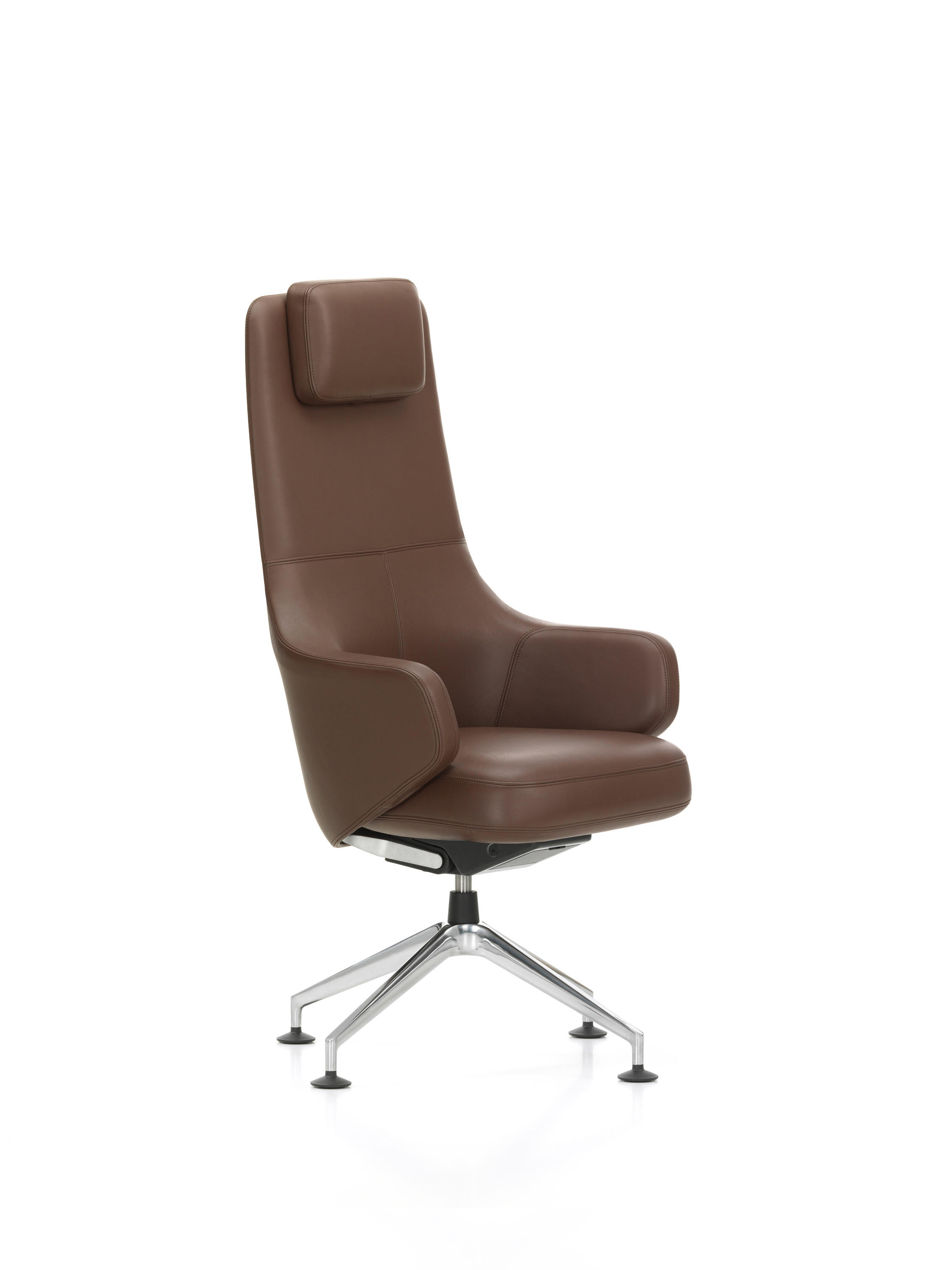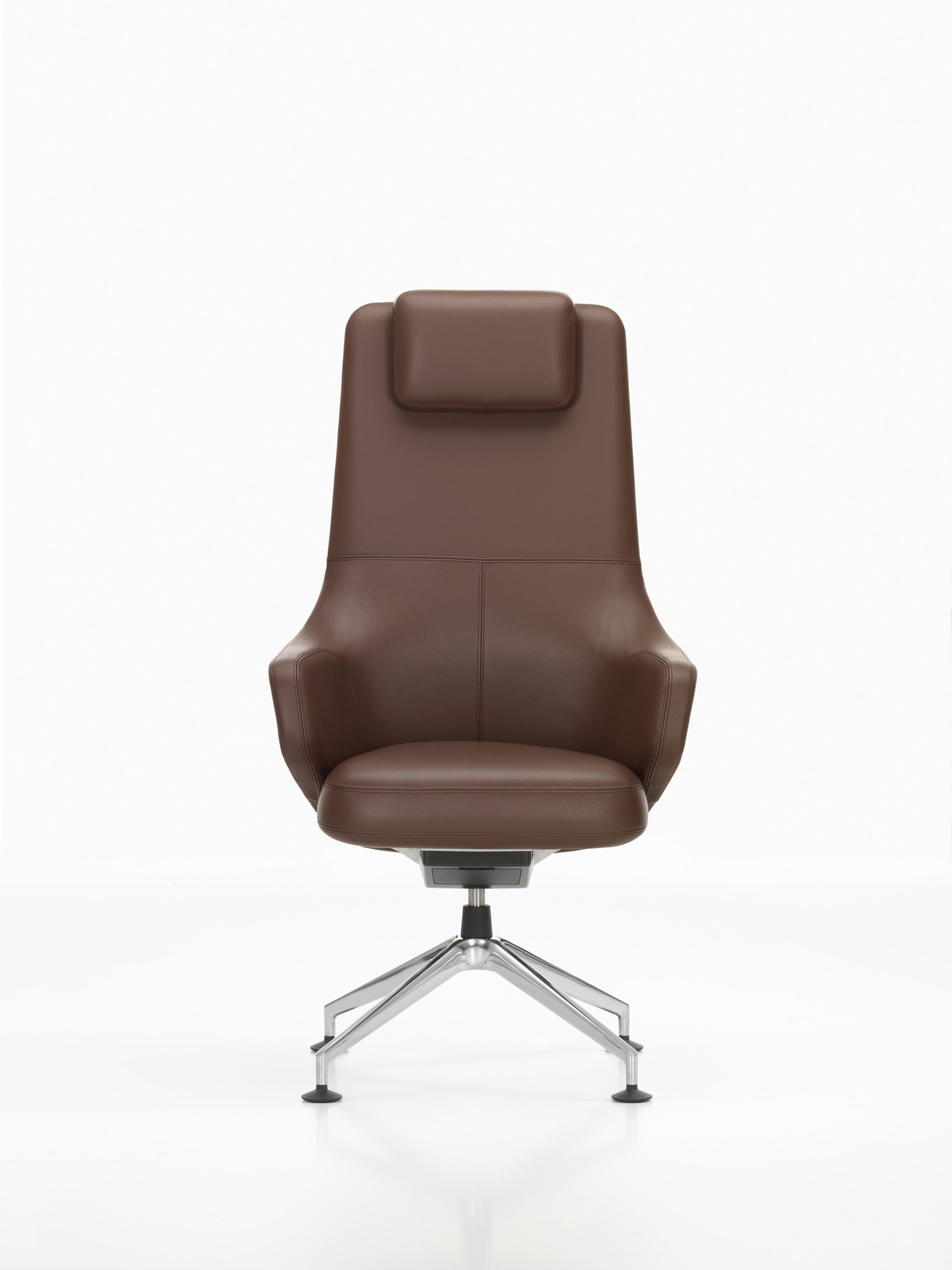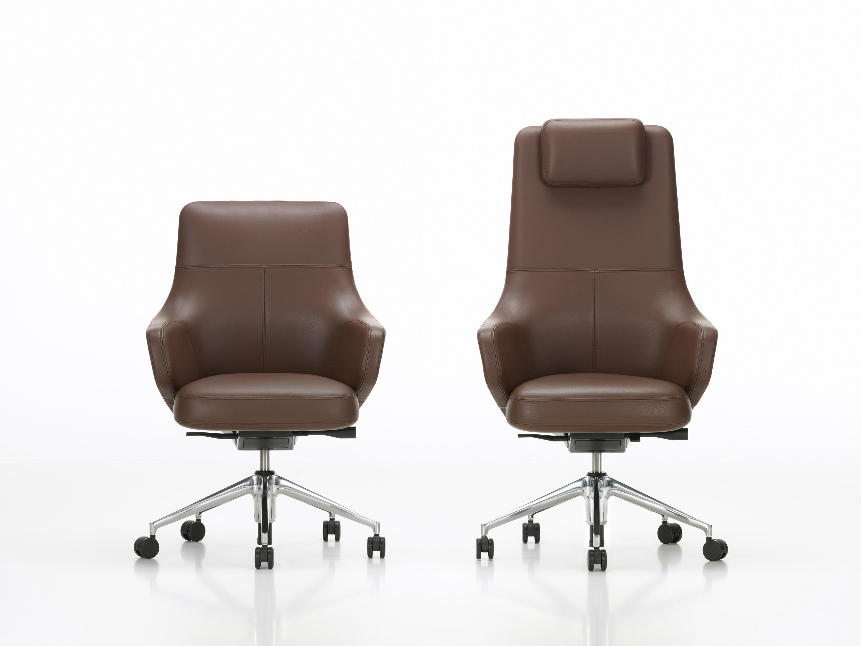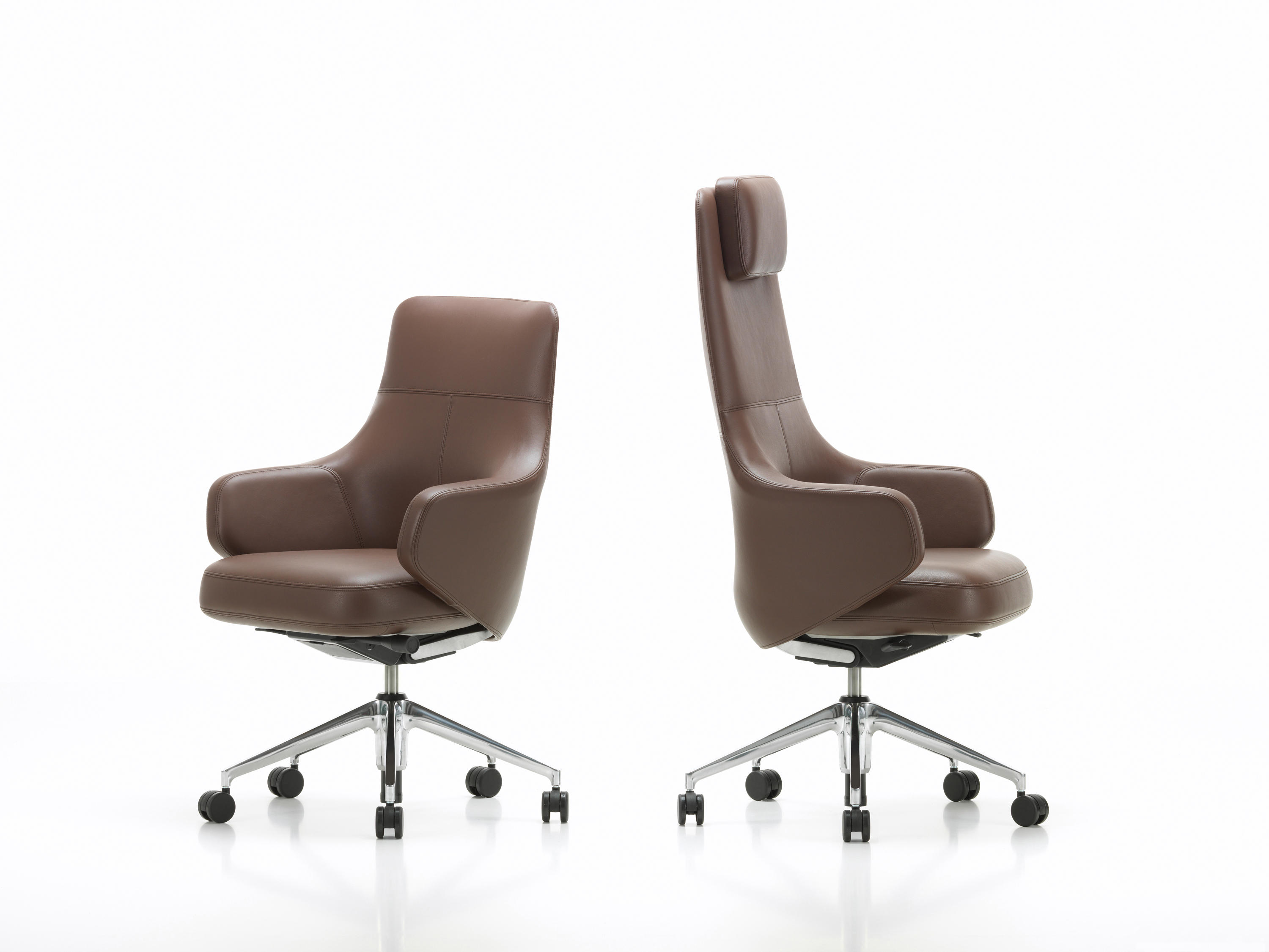 Grand Executive椅子结合了Grand Repos休闲椅的优雅,这是由Antonio Citterio为Vitra Home Collection设计的,具有现代办公椅的功能。 Grand Executive椅子的尊贵光环与时尚美感相得益彰。采用优质皮革制成,柔软的软垫内饰提供极致的舒适感。装饰性接缝凸显了椅子的手工细节,并勾勒出其体积结构。 FlowMotion机制可以适应个人用户,以确保每个坐姿的同步舒适度。 Grand Executive Highback模型配有可调节颈垫。