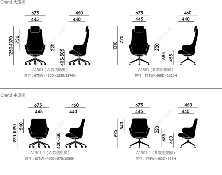 Grand Executive椅子有不同的版本:Grand Executive Lowback以其靠背为特色,Grand Executive Conference为访客座位和会议座位提供了先进的解决方案。与Grand Repos和Repos一起,它们形成了一系列椅子,为办公室和会议室以及大厅,等候区和接待区提供统一的外观。
