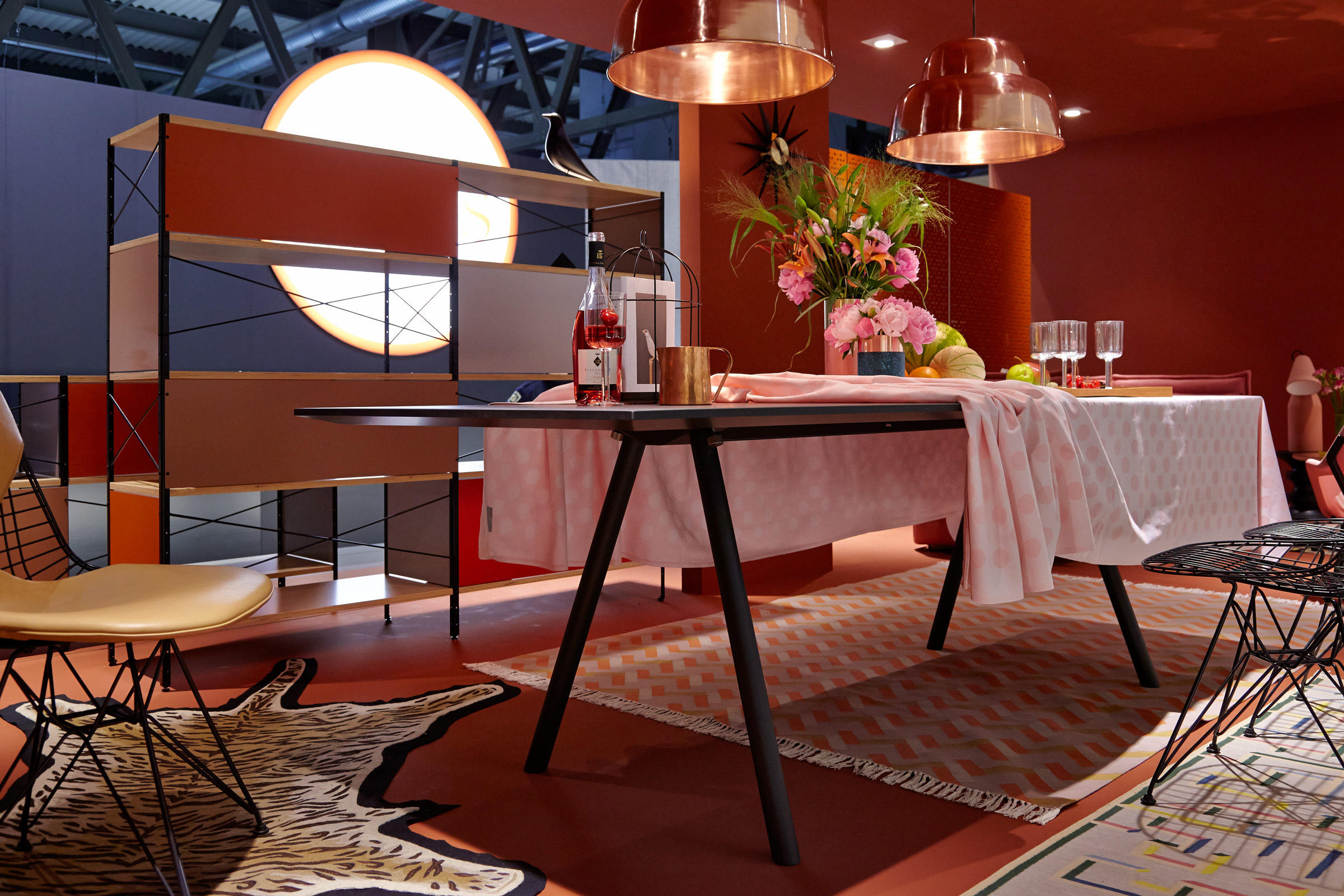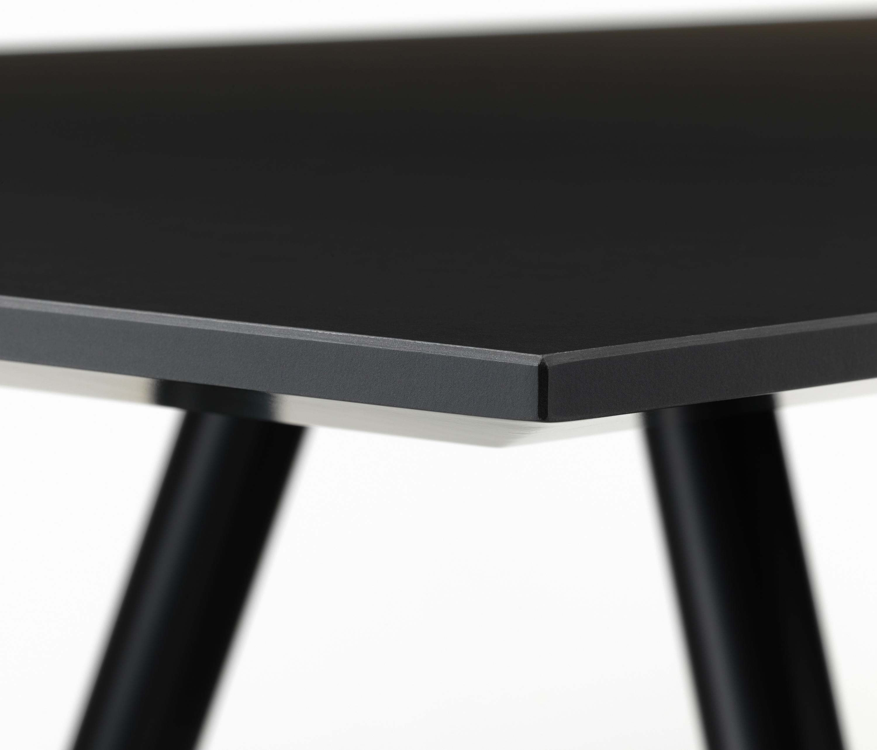 像A-Table这样的纯粹设计使Maarten Van Severen成名:具有象征美感和精心平衡比例的产品成为他的标志。 桌面采用油毡表面,这是一种天然且耐磨的材料,营造出整体效果。 黑色桌腿突出了这种外观。