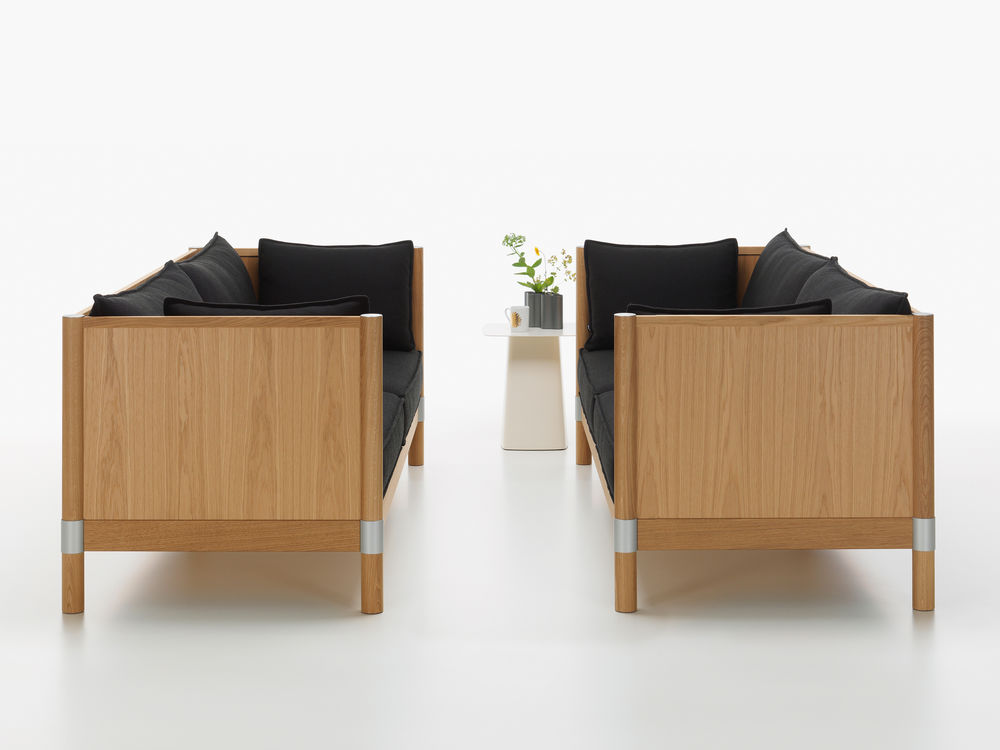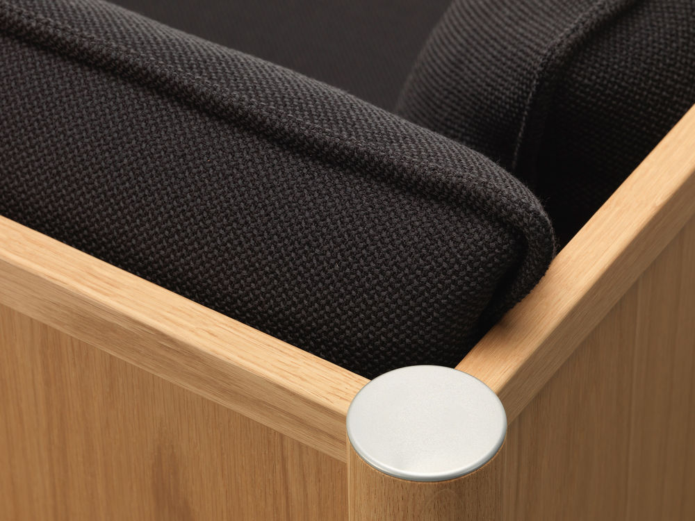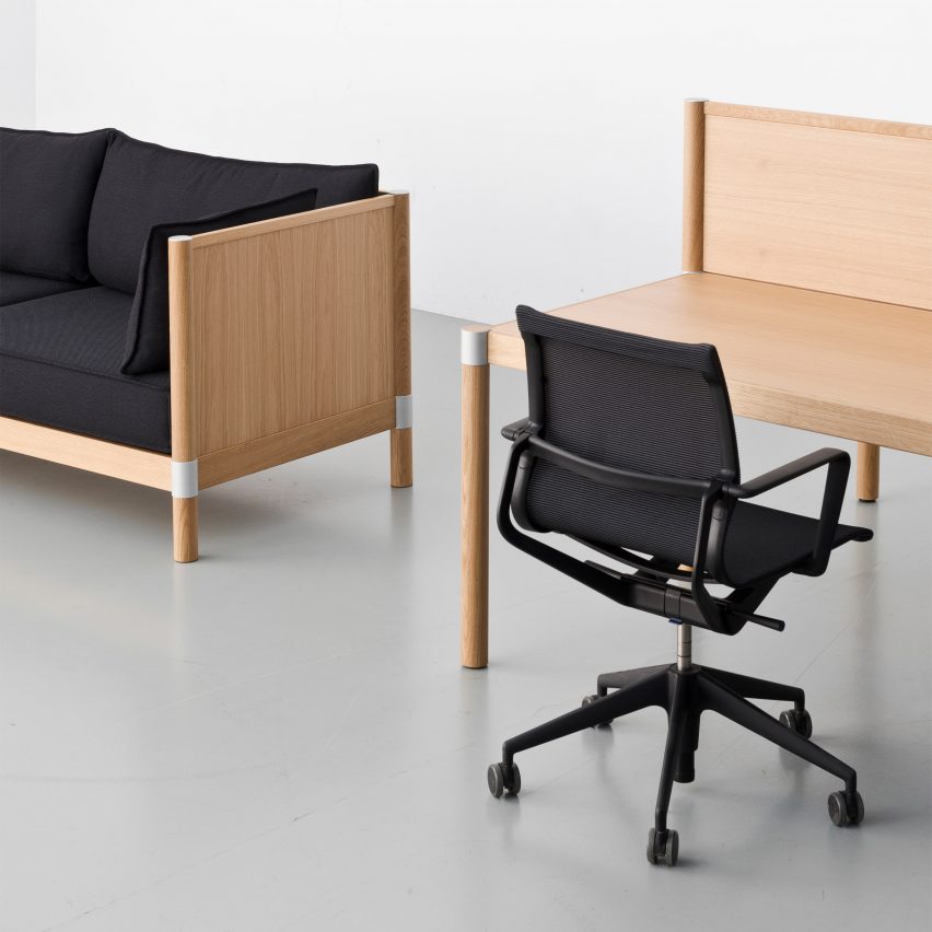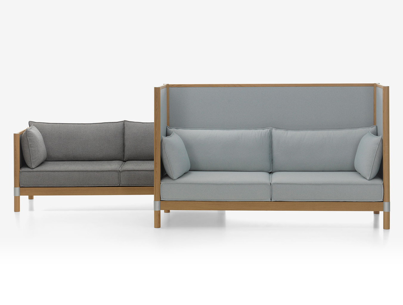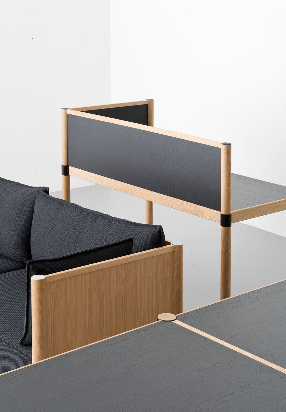 Cyl Sofa的侧面和后面板为休息提供了空间:低矮的面板发出了更多需要隐私的信号,高大的面板实际上创造了一个遮蔽的物理空间 - Cyl Sofa High可以保护用户不被看见。 两个Cyl Sofa高单元可以彼此相对放置,以创建一个自发的会议室,无需任何固定结构。 沙发坚固的室内装潢支撑着直立的坐姿,有利于工作任务和会议; 面板有木饰面或织物覆盖。