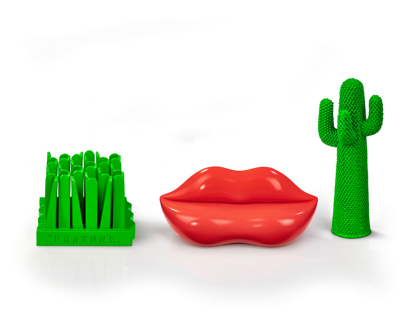 冷膨胀聚氨酯的使用使得传统的家具建造方法变得多余。 “Studio 65”系列的家具设计中突出了一系列雕塑家具,因为它彻底利用了这种新材料所允许的设计自由。这种家具的风格体现了20世纪60年代的图像艺术的特征:Claes Oldenburg的柔化,漫画和商业艺术中的天真风格,或者20世纪60年代物品所呈现的巨大的,令人陶醉的尺寸。除了一个带柱的希腊神庙形状的扶手椅和作为儿童游戏系统的巴比伦神社外,Studio 65对“激进设计”的贡献包括一个女人嘴巴形状的沙发。副标题Studio 65给了它的沙发Bocca:»别名嘴唇,别名Marylin«,是对这种设计及其象征意义的灵感的参考。工作室65在这种背景下引用了萨尔瓦多·达利(SalvadorDalí)的设计理念,其背景如下:»具有象征功能的物体不留任何正式考虑的空间。它们的特征仅在于每个人对爱的看法,并且超越任何形状的概念。