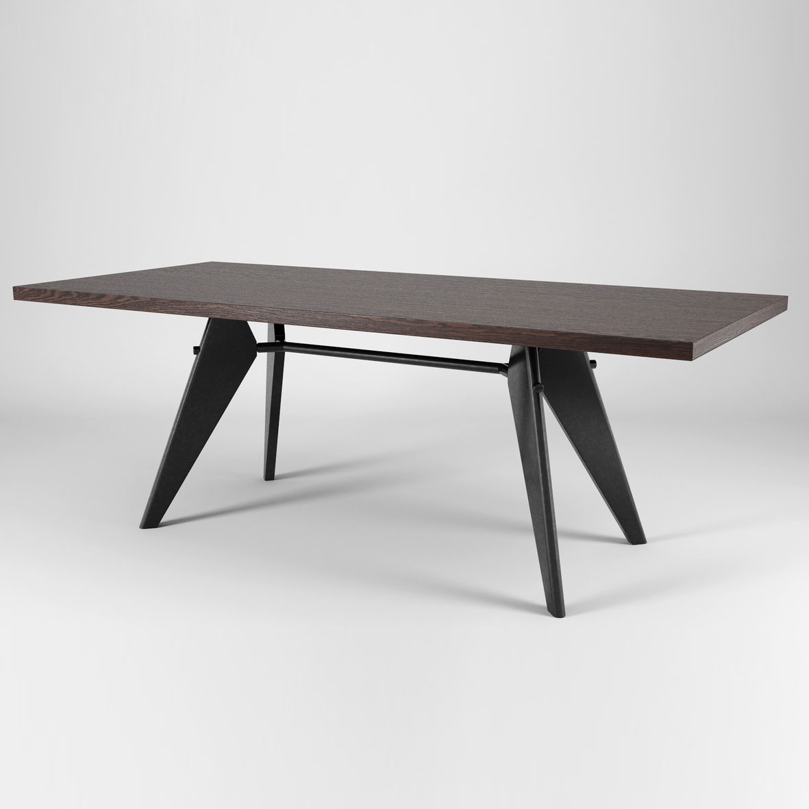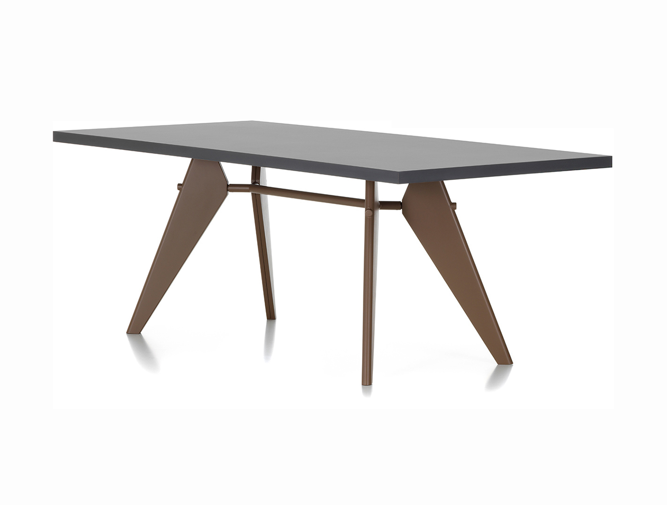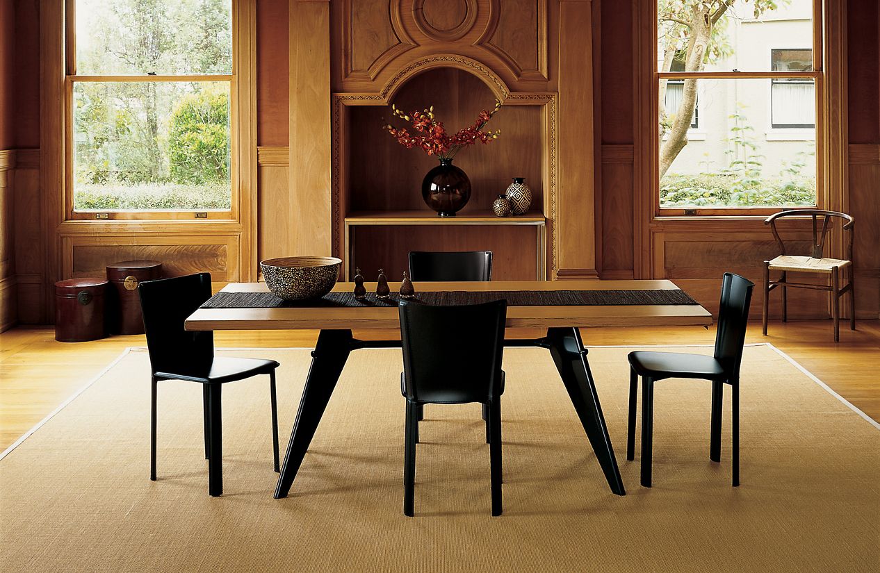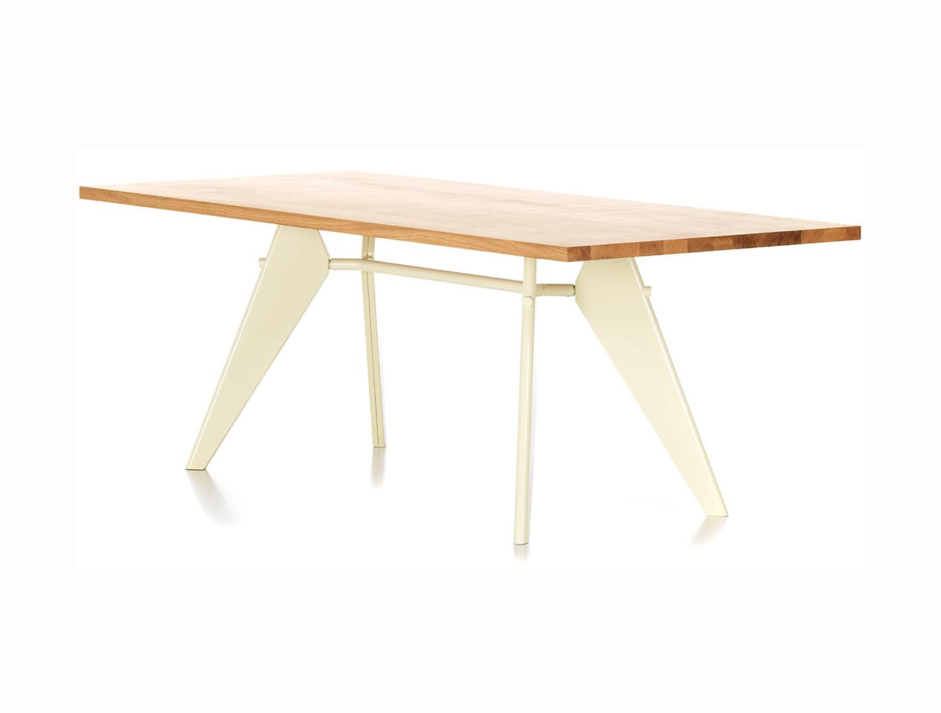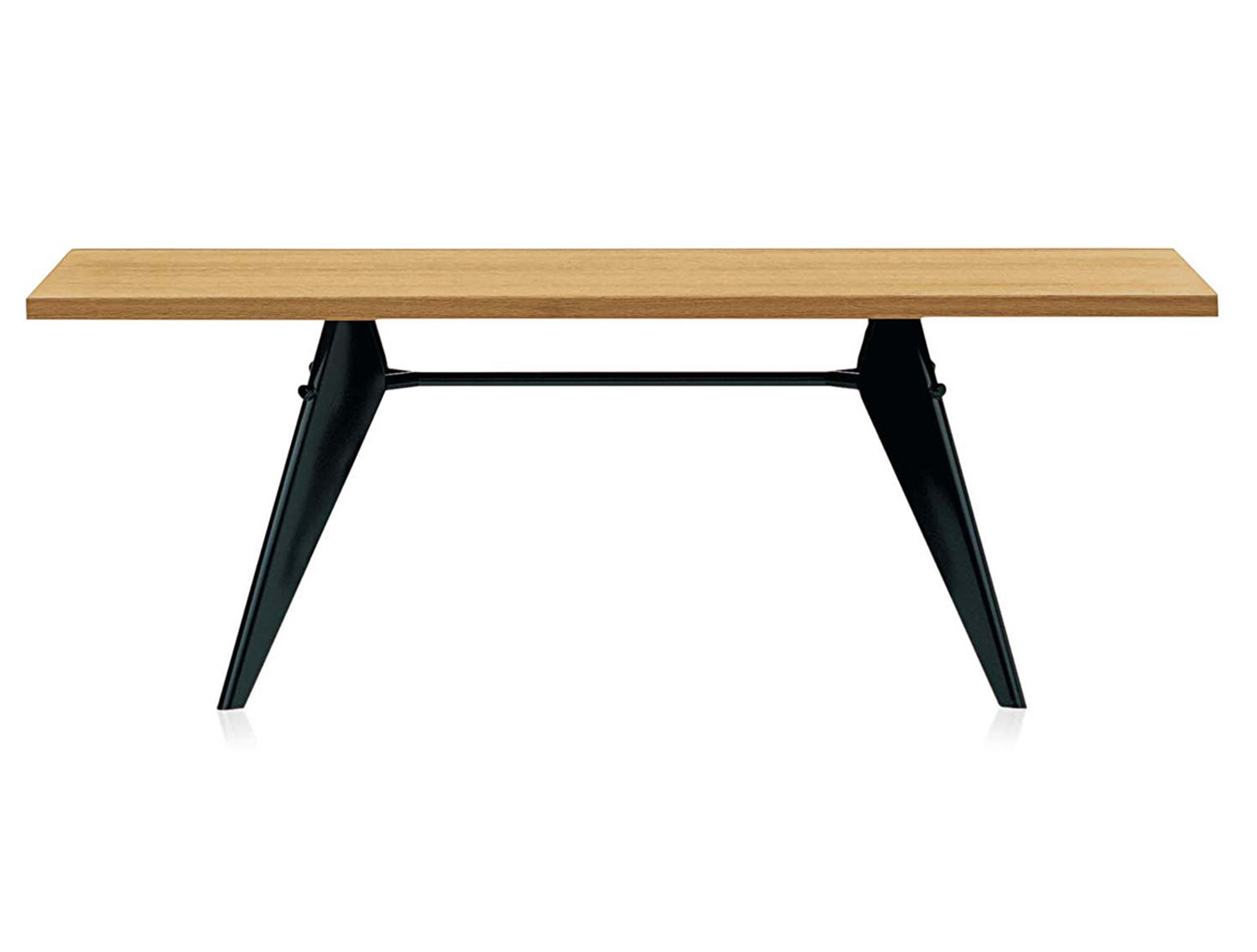 JeanProuvé的EM Table的美学外观坚持结构原则,说明其结构中的力和应力流动。 它有各种尺寸,桌面采用优质实木或HPL层压板,颜色可供选择。 长度为2000或2400毫米的顶部也有橡木贴面。 由于这种广泛的选择,每个餐厅都可以找到理想的EM Table。