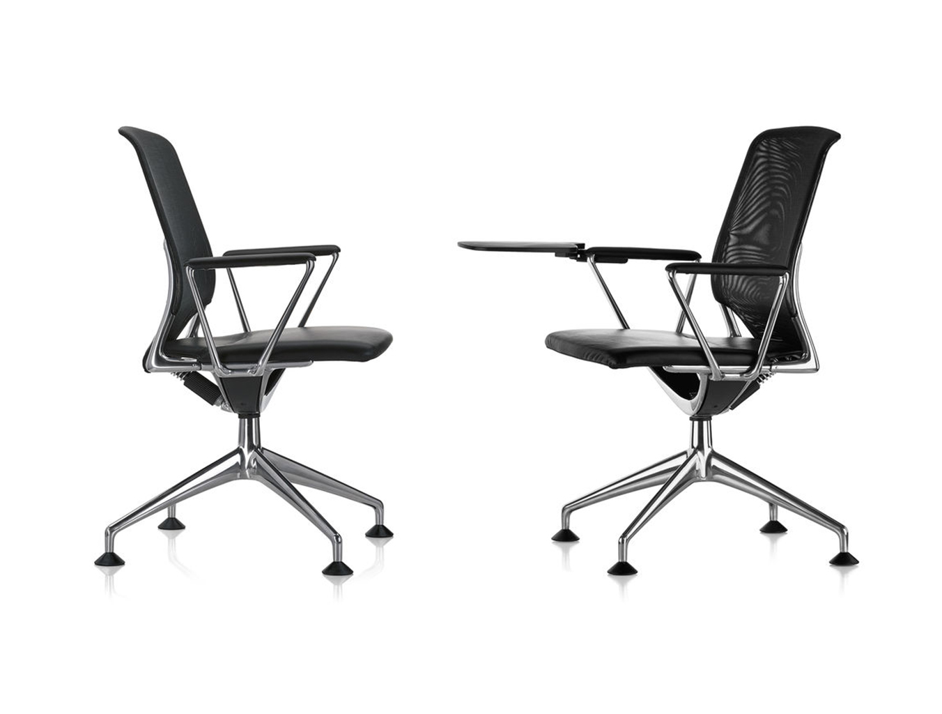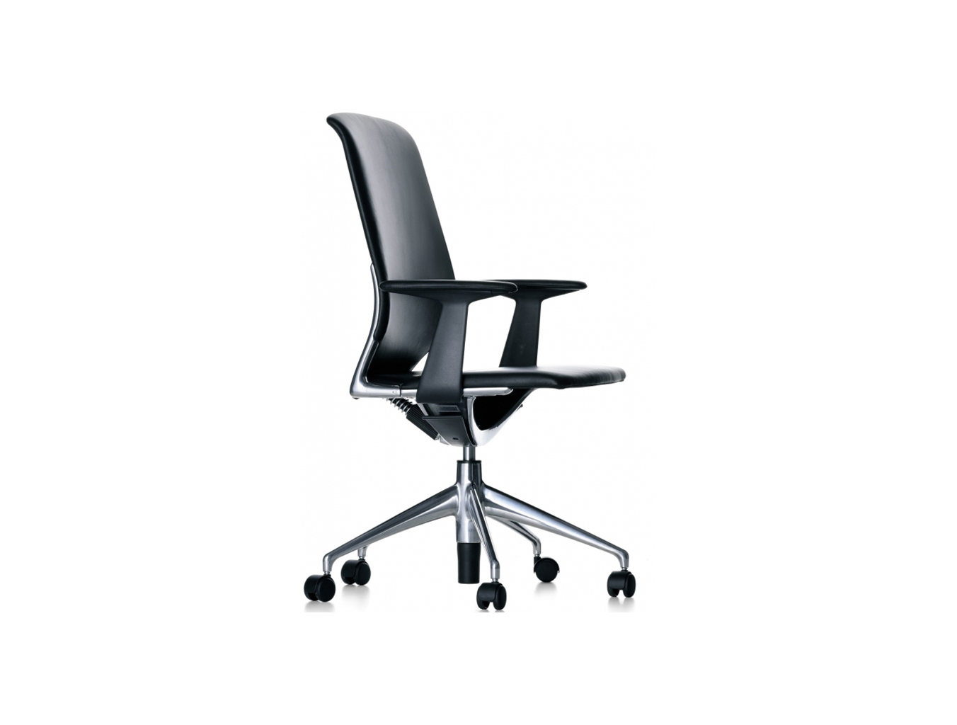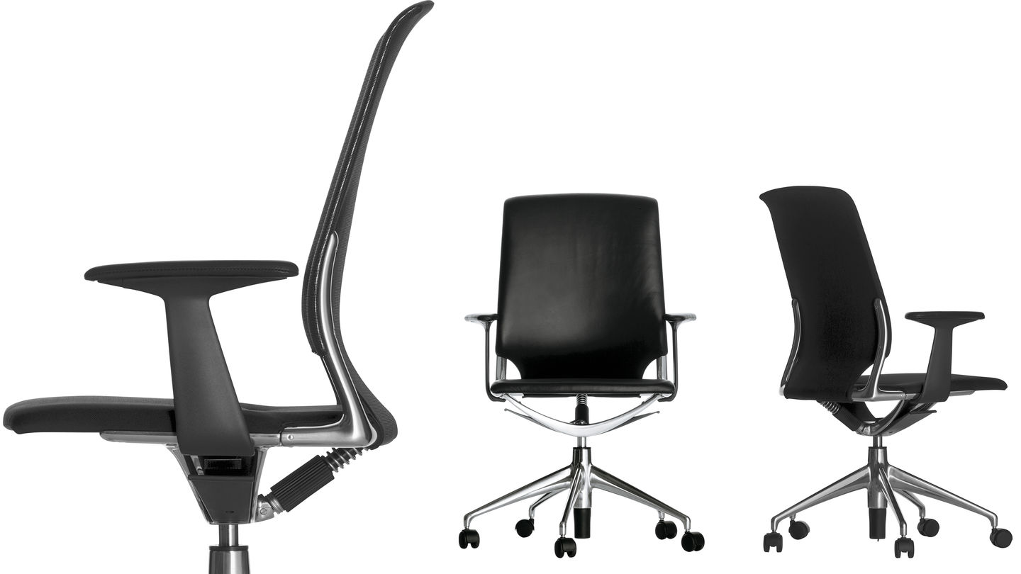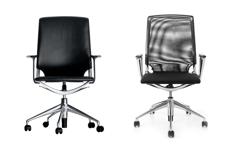 Meda Chair代表舒适,技术和美学的最佳组合。 其同步运动及其倾斜和可锁定靠背与座椅衬垫和优雅的装饰元素相结合,为用户提供卓越的舒适感。 座椅的装饰有皮革或织物可供选择,而靠背则可选择皮革或网眼织物。