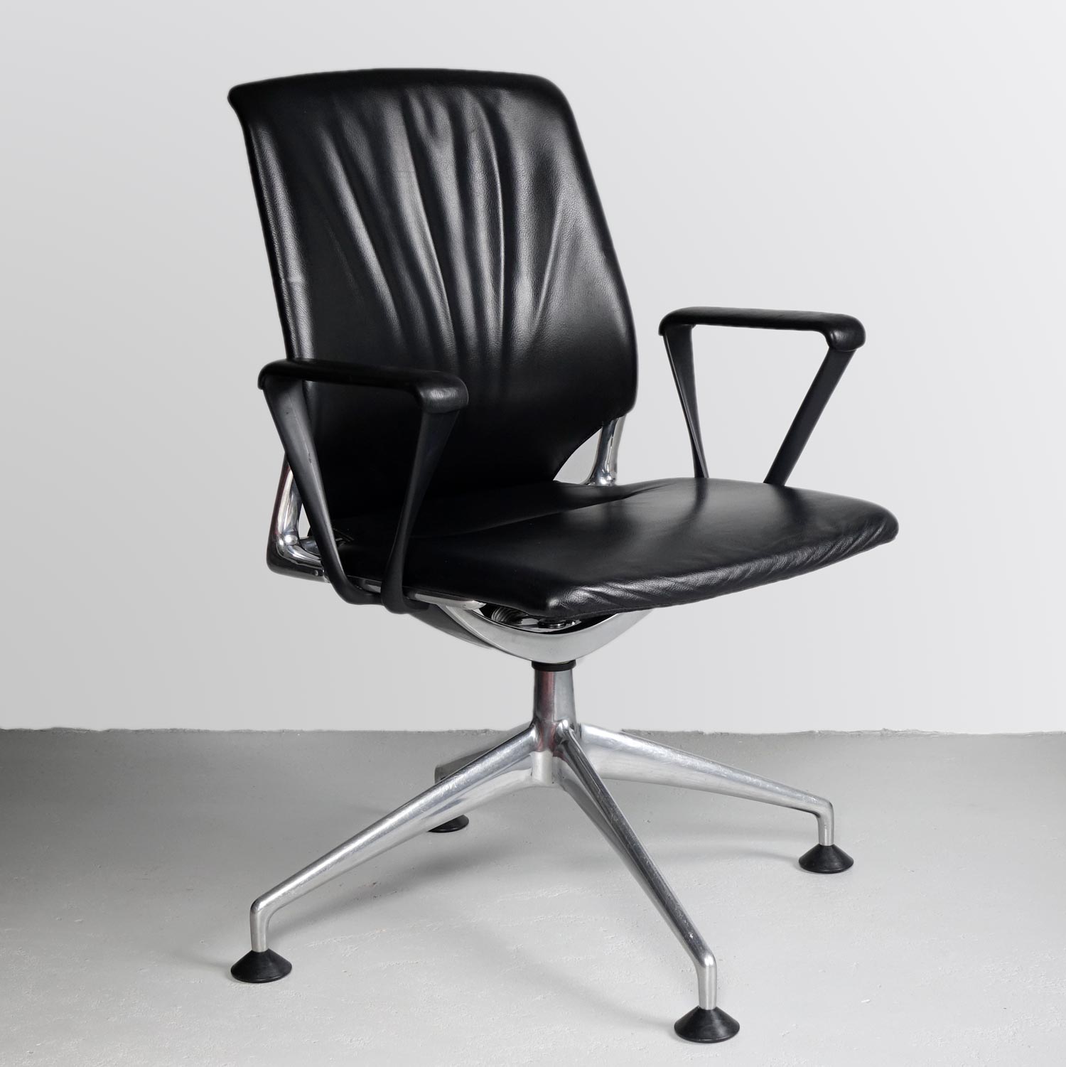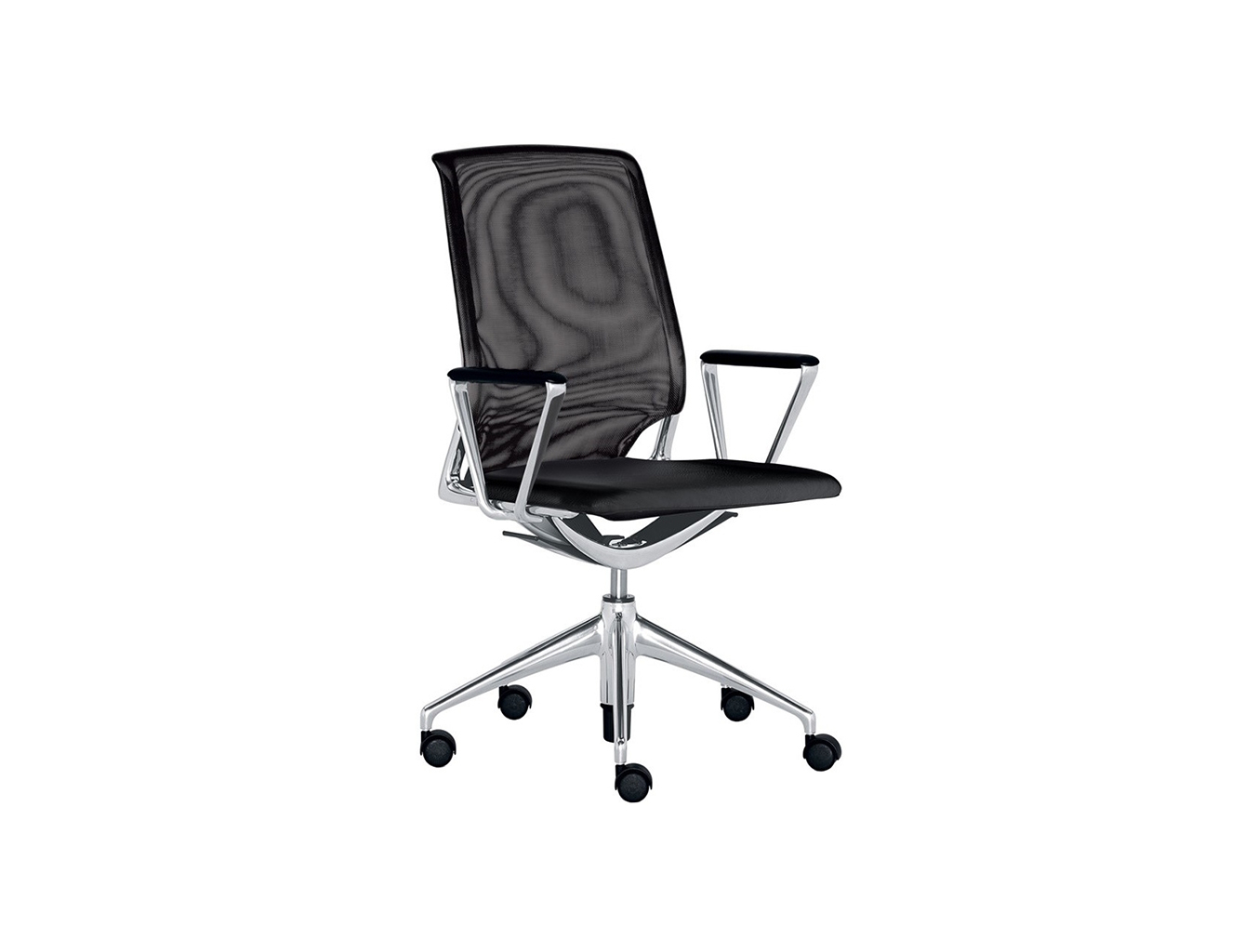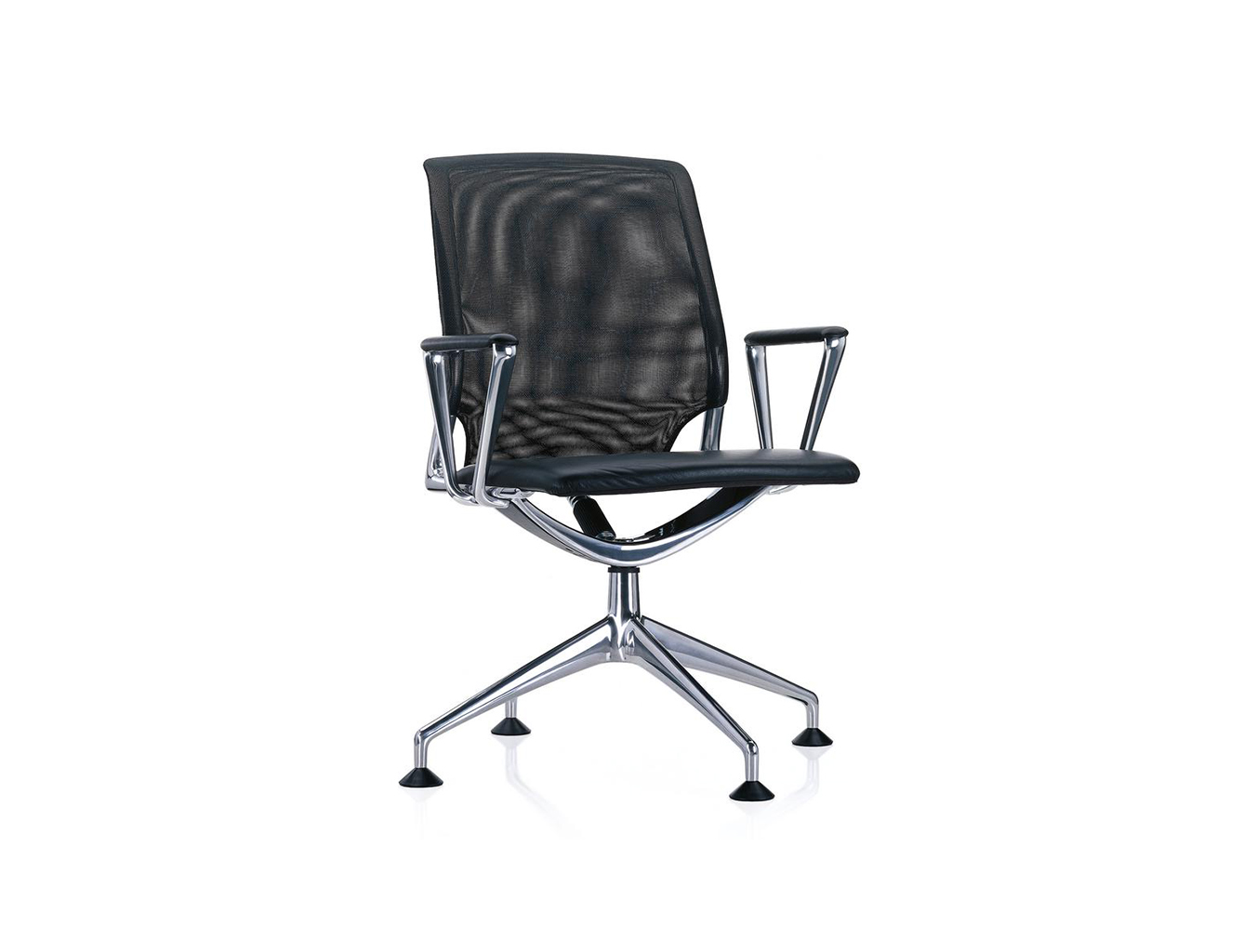 Meda Chair代表舒适,技术和美学的最佳组合。 其同步运动及其倾斜和可锁定靠背与座椅衬垫和优雅的装饰元素相结合,为用户提供卓越的舒适感。 座椅的装饰有皮革或织物可供选择,而靠背则可选择皮革或网眼织物。