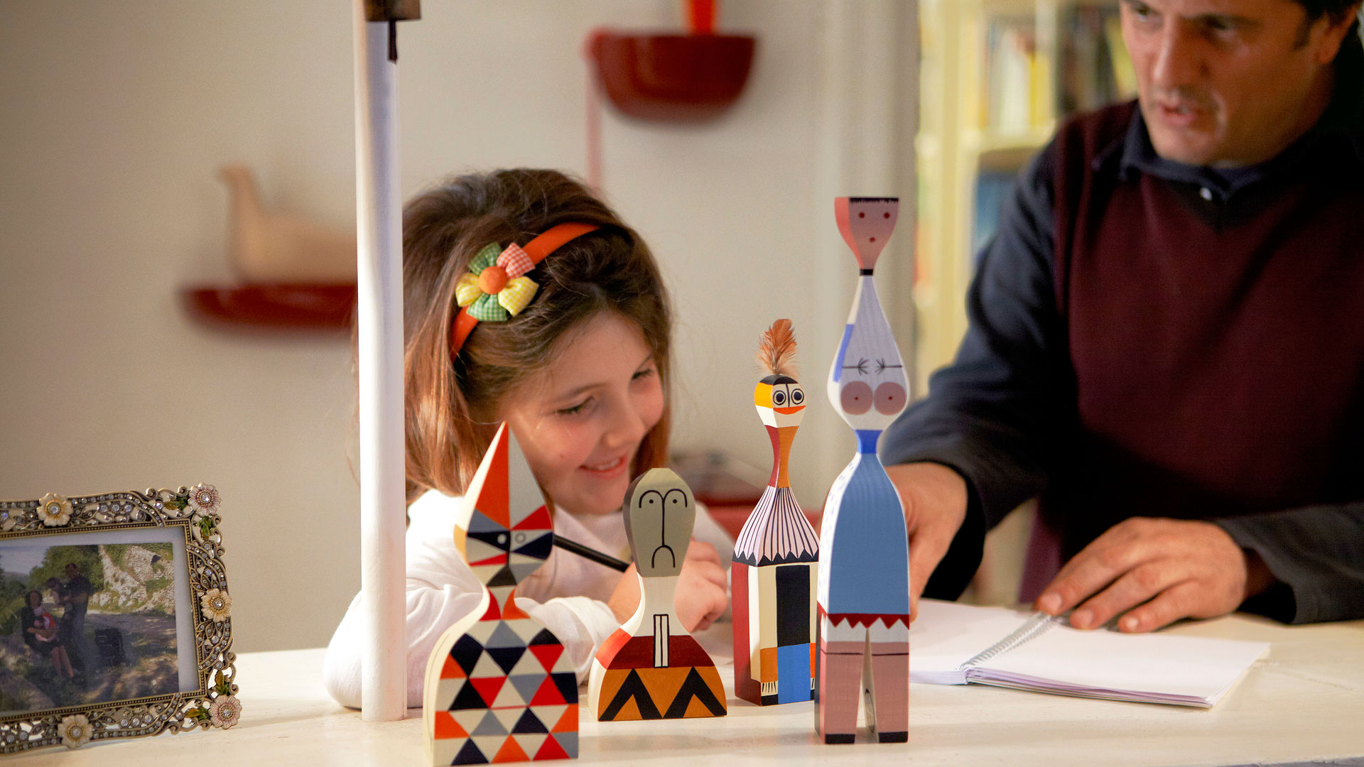 Alexander Girard的木制娃娃是一个代表人类和动物角色的大型木制家族。 吉拉德于1953年设计了他们作为圣达菲家中的装饰物品。 这些原件是维特拉设计博物馆馆藏的吉拉德庄园的一部分,作为当前重新版本的模型。 精确地复制到最后的细节,许多不同的木制娃娃今天仍然是手工制作和绘制的,就像Alexander Girard的复古作品一样。 即使它们之间的差异非常微小:每个木制人物都是独特的个性化产品,真正独一无二。