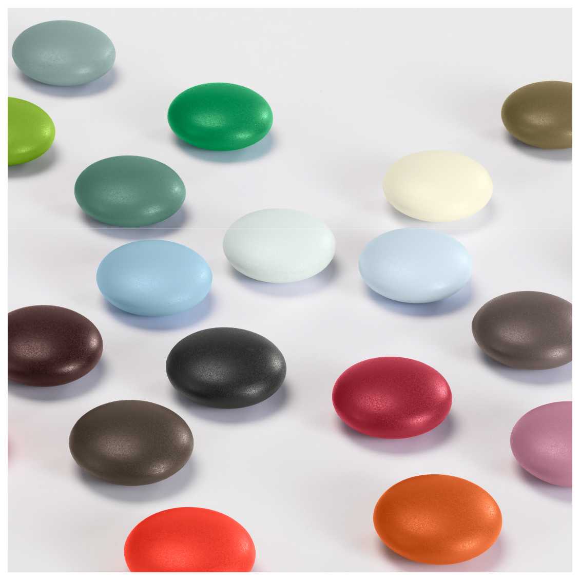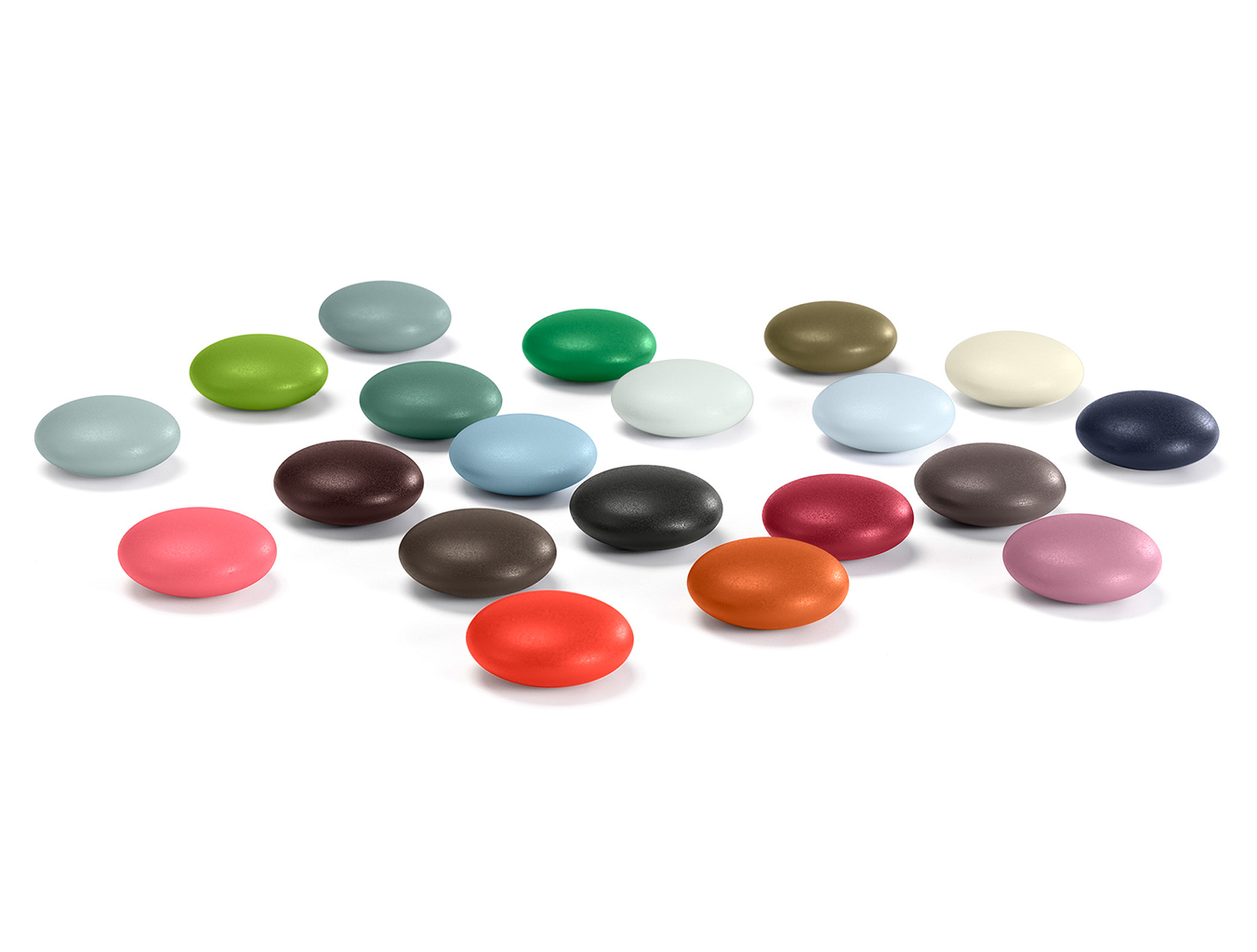 由于其有机形状的轮廓,磁铁点让人联想到鹅卵石。 带有坚固塑料盖的强力磁铁有四种不同的颜色组,每组包含五个磁铁。