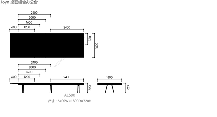 Joyn 桌面组合办公台 系列尺寸/示意图