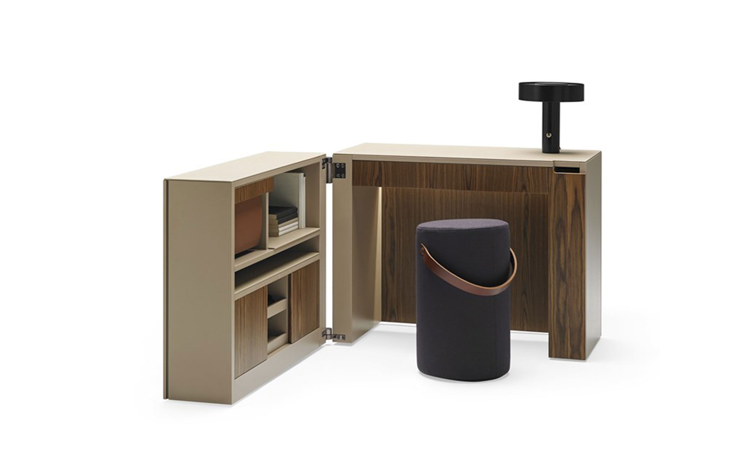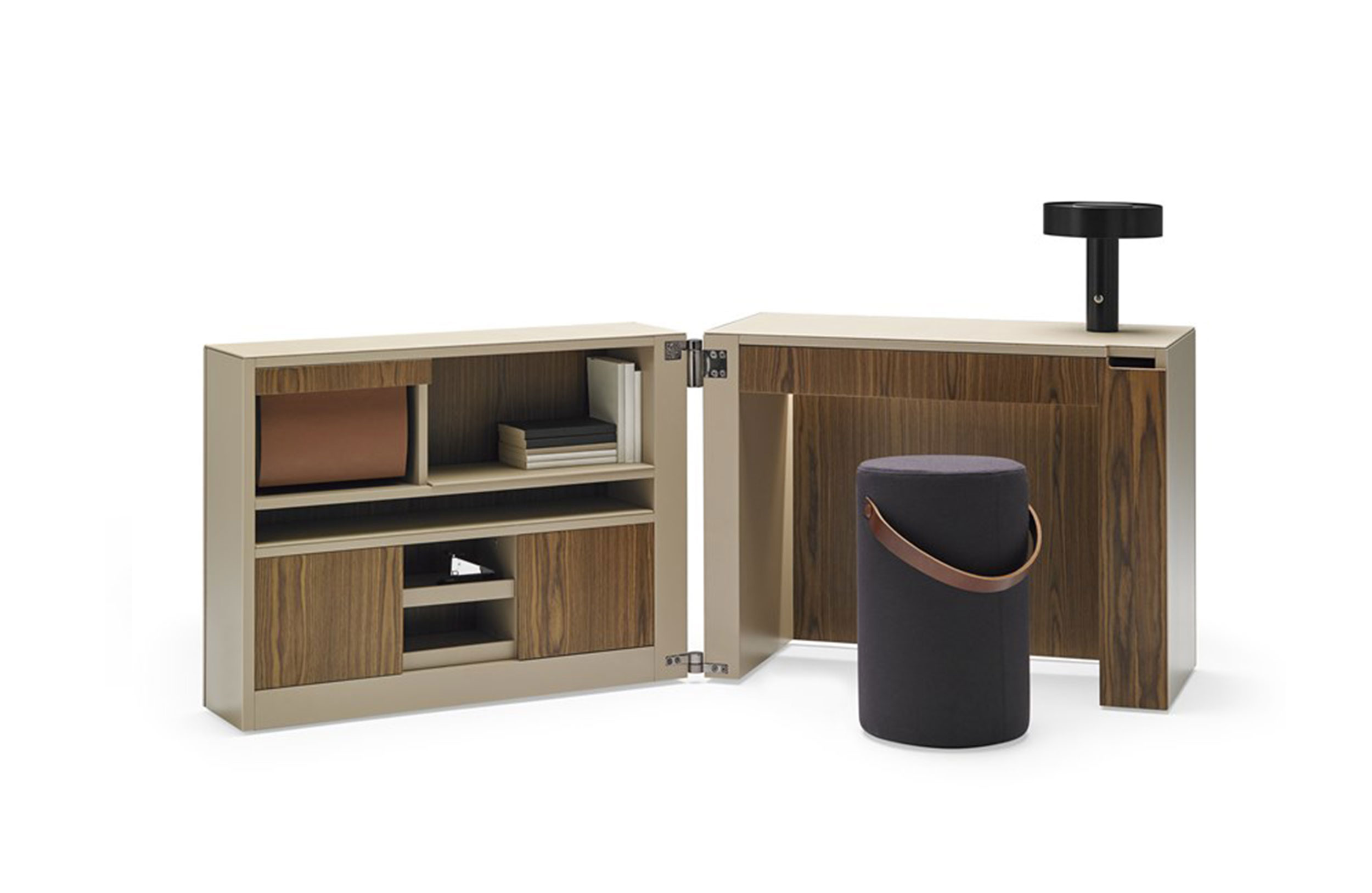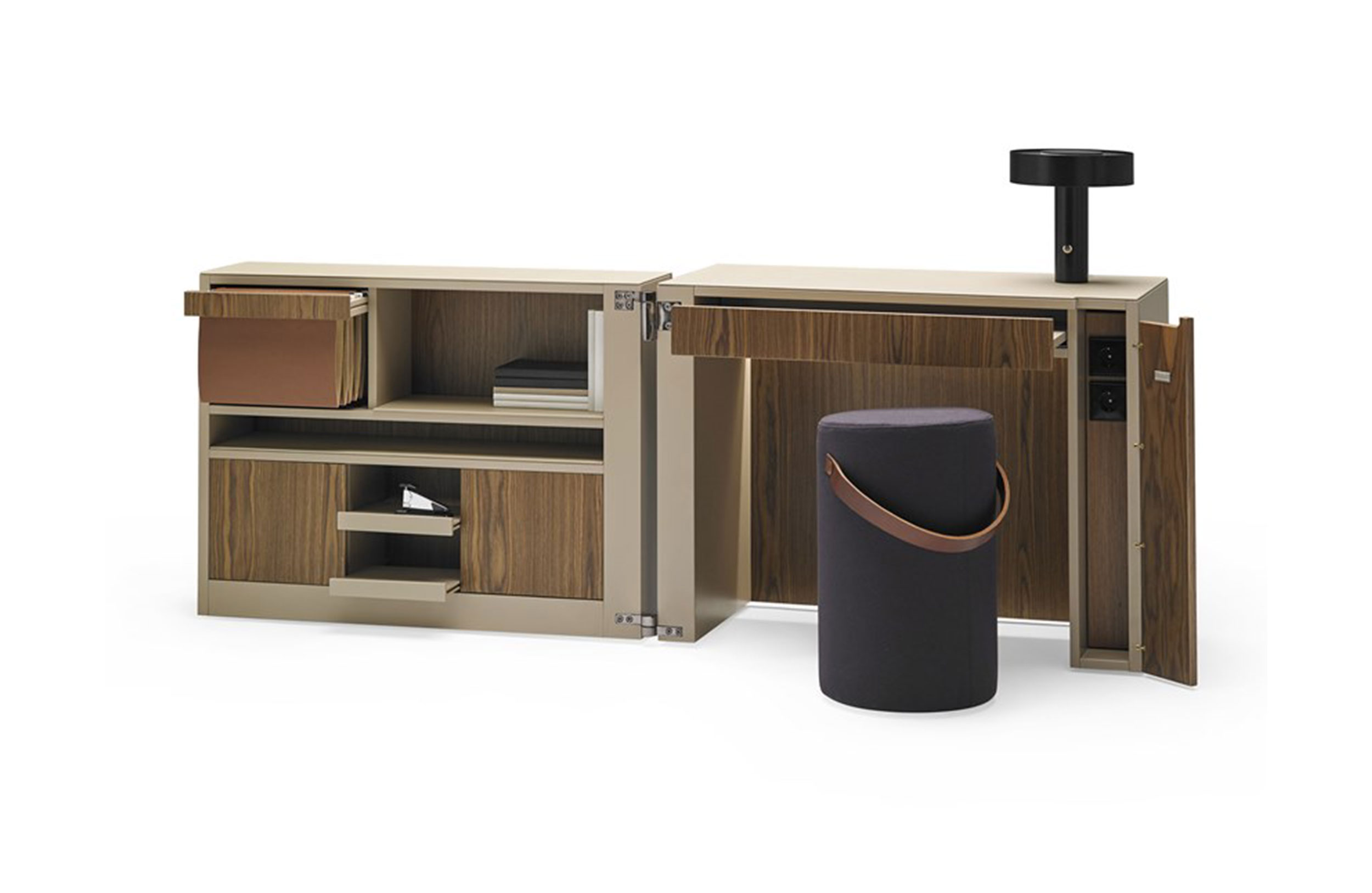 家庭办公,小的工作空间,并保持我们的文件和贵重物品内置电气化和LED照明终结:。亚光漆和木的结合