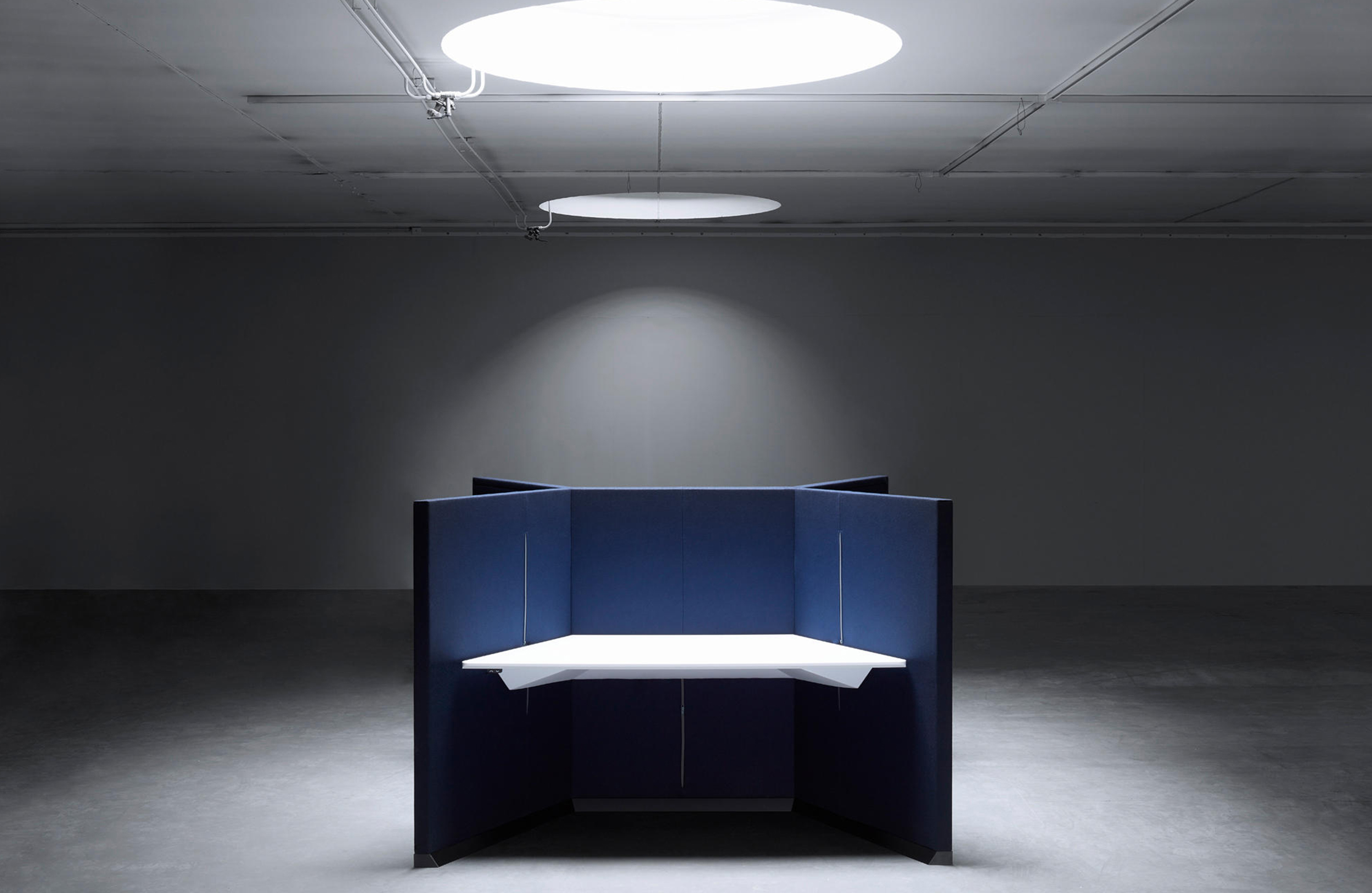 My Hive与其他工作站的区别在于它对细节的关注程度如何。Poul Christiansen不再使用腿部,而是将桌面整合到50毫米深的吸音屏幕中,从而释放空间。调节高度的机制隐藏在拉链后面。在桌子下面,有一个智能电缆盒。