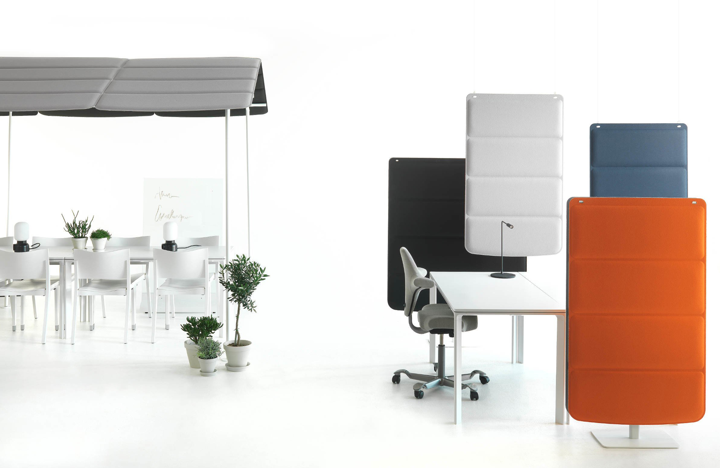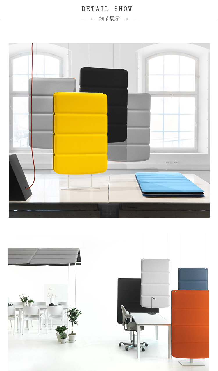 Abstracta格子图案更新了隔断墙的概念,同时保留了传统消音器的特性和功能。由层压毡和织物制成,您可以悬挂或离开柔软的格子板; 一切都取决于空间的需求。Abstracta格子系列包括地板屏幕,挂板和房屋。由层压毡和织物制成,您可以根据房间的需要将柔软的格子板挂在天花板上或站在地板上。