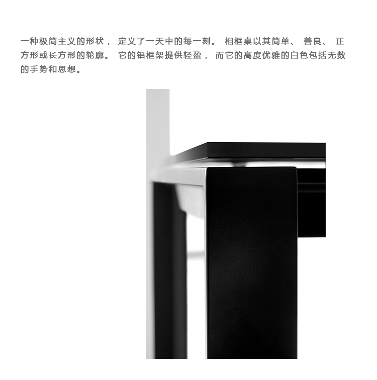一种极简主义的形状,定义了一天中的每一刻。相框桌以其简单、善良、正方形或长方形的轮廓。它的铝框架提供轻盈,而它的高度优雅的白色包括无数的手势和思想。