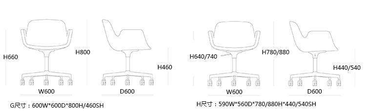 PASS 洽谈椅/餐椅 系列尺寸/示意图