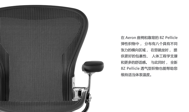 尽管Aeron座椅标志性的外形大部分做了保留,没有多少改动,但座椅从头到脚都经过了重新制作以满足当今工作的需求。在原创合作设计师Don Chadwick的帮助下,我们在有关就坐科学的最新研究成果的基础上,使用最先进的材料、制造和技术,经过缜密审慎的思考,对这款座椅进行了更新改进。