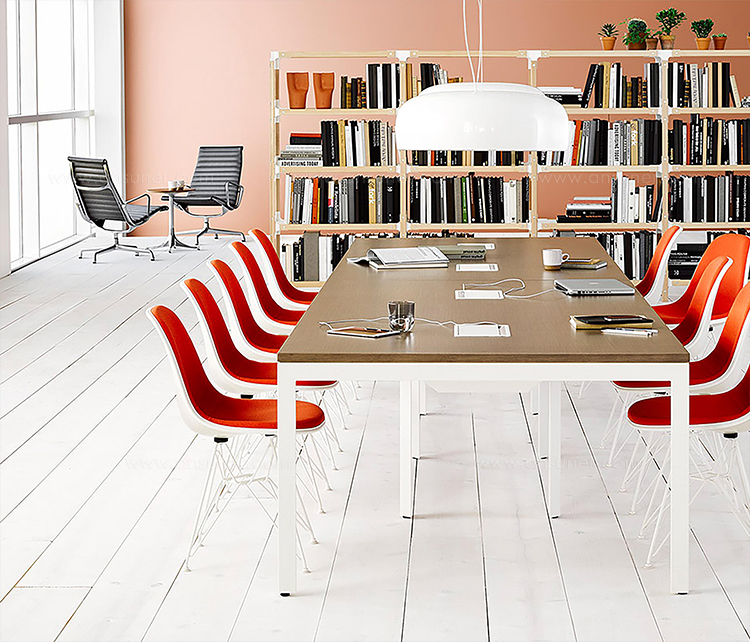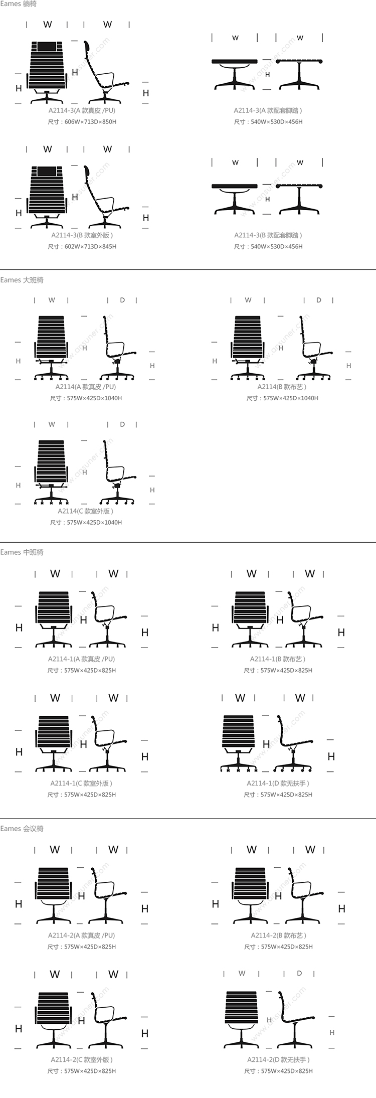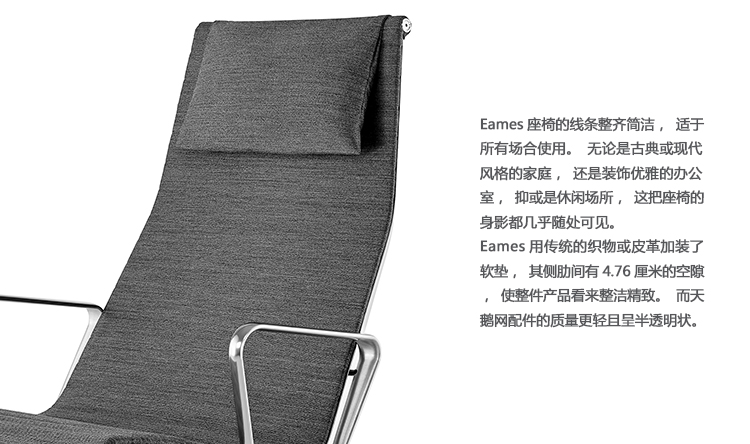 Charles与RayEames夫妇是20世纪最有影响力的设计师,卓越的设计涵盖了家具、建筑、影像与平面设计。他们从二次世界大战中美国海军的实验计画中学习经验并发展可谓是现今工业中使用模铸胶合版的先锋,这对设计界的超级夫妇档自1940年参与了由MOMA举办的有机家具设计大赛,自今已有近百件他们的作品被各大博物馆所永久典藏。 Eames® Soft Pad Side Chair(伊姆斯软包会议椅)是夫妻俩1958年设计的,是在全铝系列的基础上发展的另一系列Eames产品。舒适系列在全铝的椅架上增加了皮革制的柔软坐垫和靠背,高级铝合金制作,压模四星脚,可旋转。背垫和坐垫,采用西皮,具有透气性强,内部填充高密度定型绵,不易变形,不老化,依人体坐姿,符合人体工学,耐水及对人体无害等优势。椅子扶手选用优质电镀铝合金扶手,手感舒适,永久不生锈。转椅底盘为多功能底盘,可以保护使用者长时间坐用腿部健康,且作为高度可多定位调节。气压棒采用的气杆是正规厂家出产的外贸气杆,每一根气杆都有钢印,经过严格SGS检测的才可出厂,旋转、升降自如基本无声响,使用寿命长,可承受250kg,可升降数万次,将椅面调至与膝盖同高时,使用者坐下后双脚跟可垂直平放于地上,且大腿与地面平行,最符合人体工学理论,使用者长期久坐,也不想疲惫。办公椅脚为铝合金材质永久不生锈、承受能力强,安全更放心。椅子脚轮采用优质电镀片脚轮,耐用而美观,可以随意变换位置,贴心更方便,具有防震及防松脱,让椅子的安全性能更加可靠。