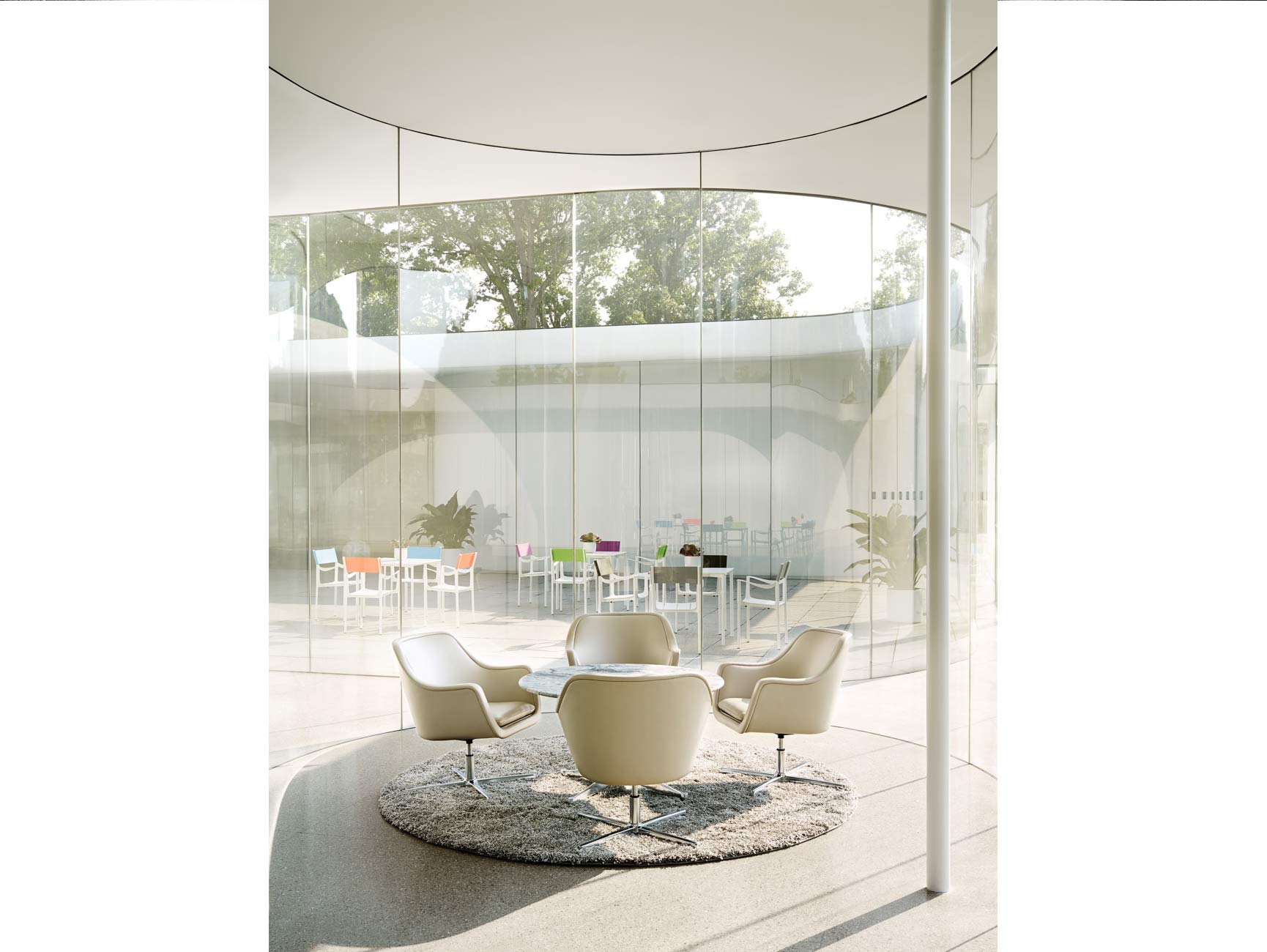 Bumper座椅具备柔和的曲线造型和出色的腰部支撑。近似无缝的设计看似简单,其中舒适感是最重要的考虑因素。扶手端部和内外壳由单件装饰品制成,环绕椅面形成连续不间断的贴边。Bumper座椅于1964年首次推出,其丰富的自定义选项组合包括众多纺织品和皮革椅套,以及一系列底座,是各种休闲、生活和工作场所的座椅首选。