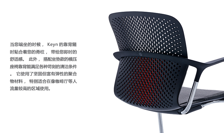 Keyn座椅系列是一套会议和单椅的组合,能为协作式的空间提供响应式的运动机制和即时的舒适感。由伦敦设计团队forpeople设计的这款产品,使用了四个关键部件来创作此系列中的每个型号的产品,所以每款产品都能保持一样的视觉吸引力。Keyn的CradleFlex运动机制能响应姿势的变换,倾仰角度可达10度,能为您带来令人愉悦的舒适感