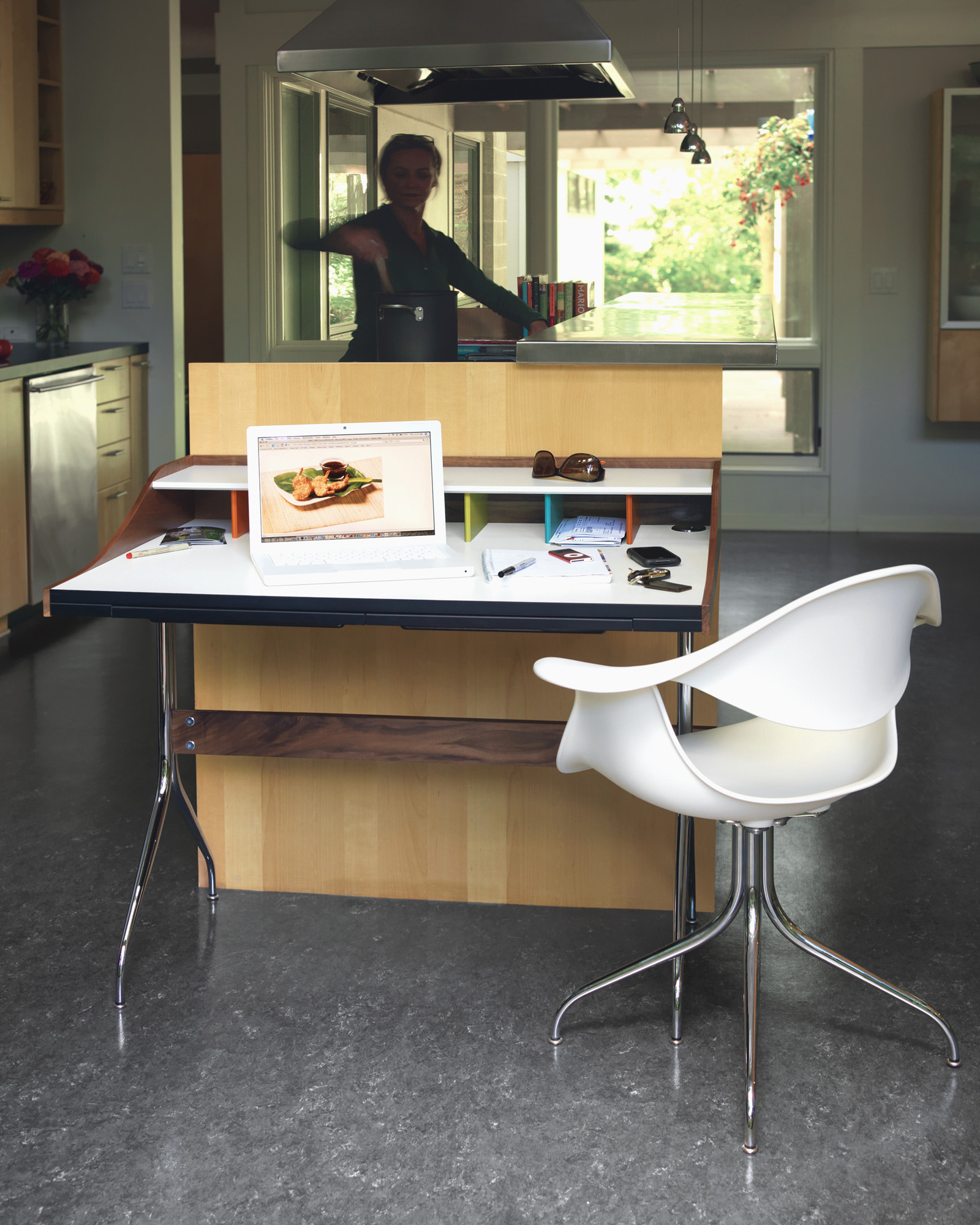 这款扶手椅所属系列的灵感来自George Nelson对创作一款具有雕刻感椅腿家具的渴望,并且他对椅腿的形状有非常具体的想法。George Nelson希望底座具有优雅的曲线,采用金属材料制造,工业加工成型,并且采用预处理饰面,同时要容易组装和分解,以方便装运,并且价格更便宜。型锻是用压力细化并弯曲金属管的过程。实践证明这是制造椅腿的绝好工艺,而Nelson也是用这种工艺为自己的独特设计命名。 对于椅座壳,Nelson将单独的椅座和靠背组合在一起,形成雕刻般的形状,以贴合人体曲线。椅背和椅身之间的缝隙可以避免产生过高的热量。宽阔平坦的扶手可以让手臂处于放松状态。放置在办公桌或是用餐区或会议室的桌子旁边,这款永恒时尚的座椅能够满足当今的需要,如同1958年刚刚推出时一样。