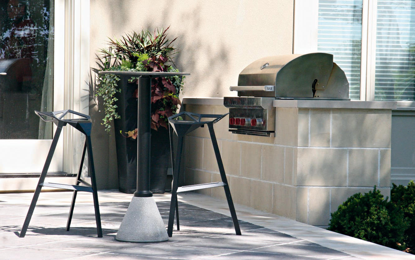 一个露天小餐馆是您阳台、露台或甲板上开胃小菜和开胃小菜的理想选阳极化铝框架和高压层压板顶部为黑色。混凝土基座有一层透明的涂层。
