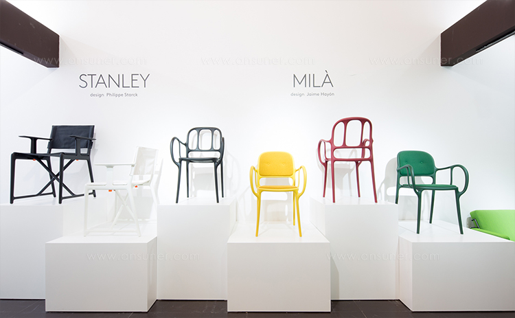西班牙艺术设计师Jaime Hayon使用空气成型技术来实现Magis Mila椅子的弯曲形状。它的动态的,手势线条让人想起加泰罗尼亚现代主义的影响,而它的玻璃纤维增强聚丙烯材料(这是Hayon的第一个,他通常在木材、金属或陶瓷上工作)在应用和着色方面都具有通用性。Mila的高度可达六英尺。